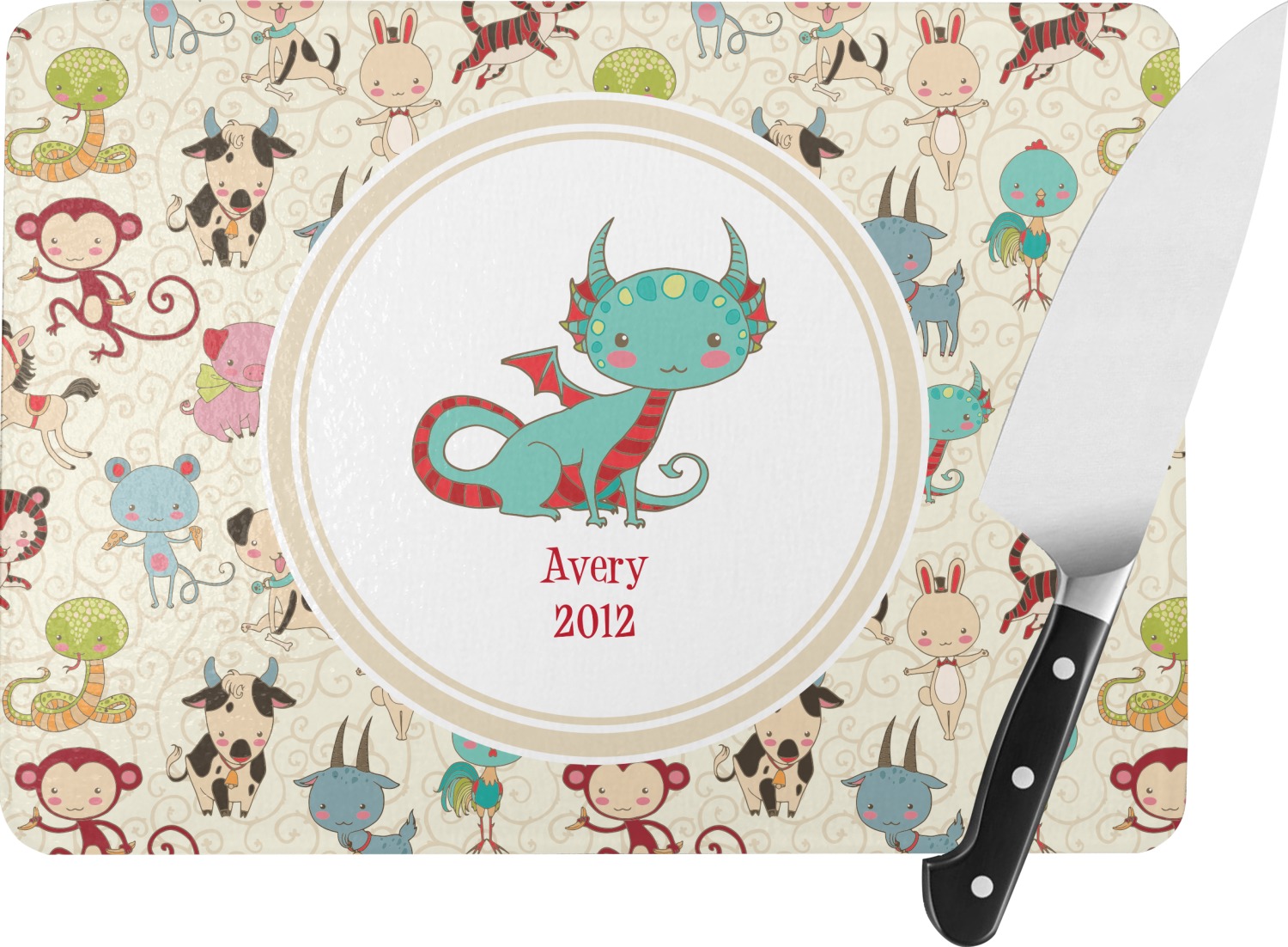 .We chose a round label with the child's name and year of birth for personalization in red and then paired it with the matching sign zodiac sign - which in this case is the dragon.
