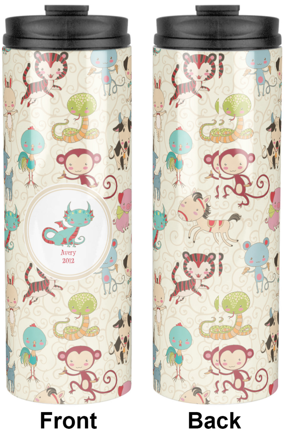 .We chose a round label with the child's name and year of birth for personalization in red and then paired it with the matching sign zodiac sign - which in this case is the dragon.