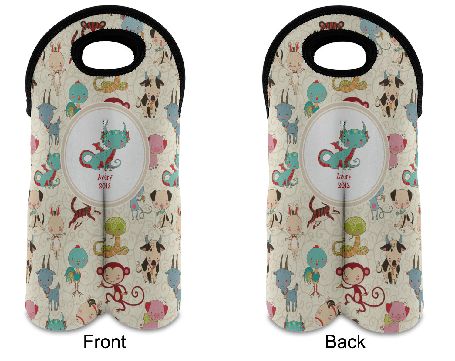 These tote bags are insulated to keep the bottles cold and have a stitched separation down the middle and double handles to keep the two bottles safe and secure during travels.