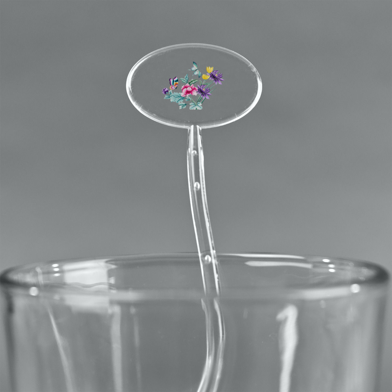 Orchids Designs for 7" Oval Plastic Stir Sticks - Clear