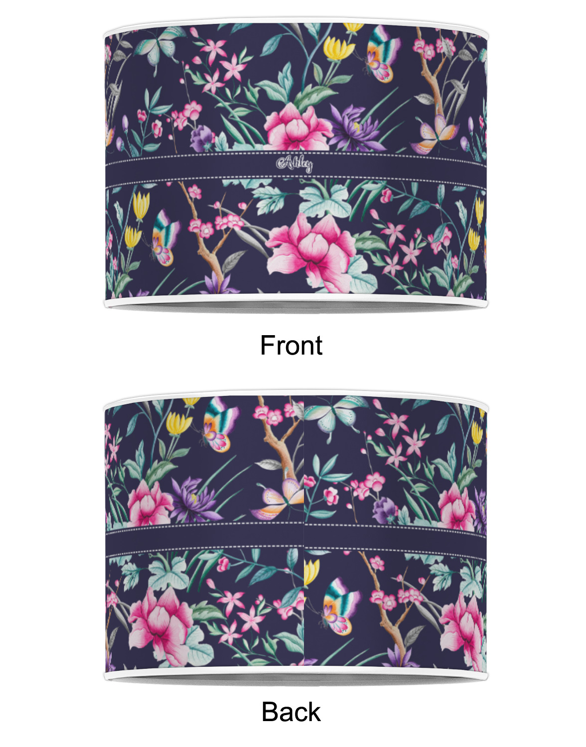 Our customized lamp shades also come in 3 different sizes: 8", 12" and 16", measuring at 8" in diameter by 6" tall, 12" in diameter by 8" tall, and 16" in diameter by 10" tall, respectively.