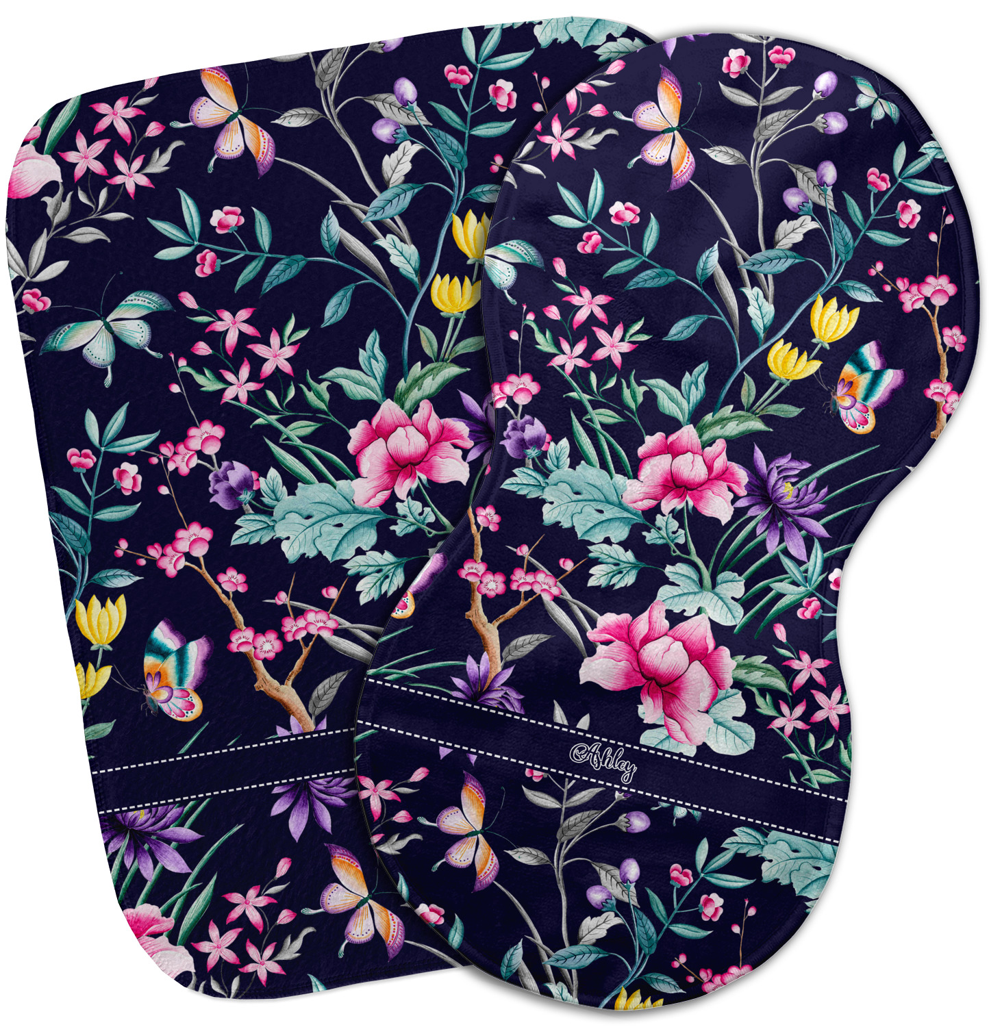 Choose your baby burp cloth from our two styles - Fleece (rectangular) or Microfiber Velour (peanut shape). The lightweight and absorbent design makes each burp cloth multipurpose; use them as a burp pad, a lap pad, a changing table, or a spare cloth to clean up any baby mess. Your customization is displayed across the front with baby-safe ink to ensure extra comfort with a white backing.