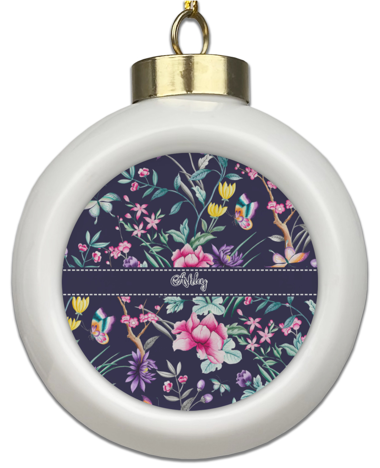 Our Christmas ornaments are a unique ceramic ball shape with a twist as it has a flat face to display your custom design! Select from one of our two design types - Christmas Tree or Poinsettia Garland - to adorn the curved back of your personal design. Each ornament measures 3H x 2.5W x 2D accompanied with a gold string accent for finishing touches to hang on your beautiful Christmas tree!