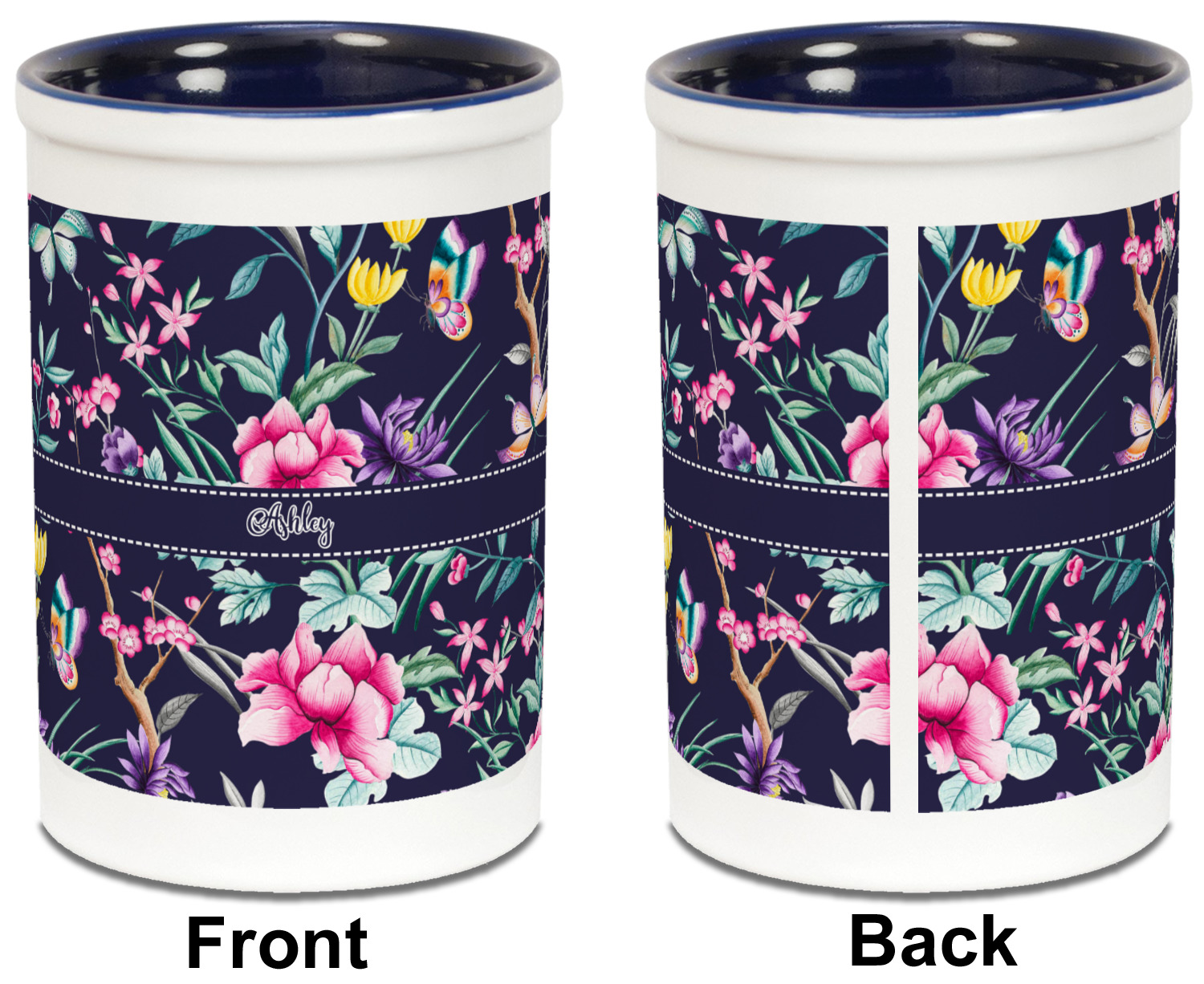 The beautiful chinoiserie design is done with a chinoiserie pattern that is hand painted watercolor flowers & butterflies. The pattern was inspired by motif and techniques of the far east and was popular during the 18th century.