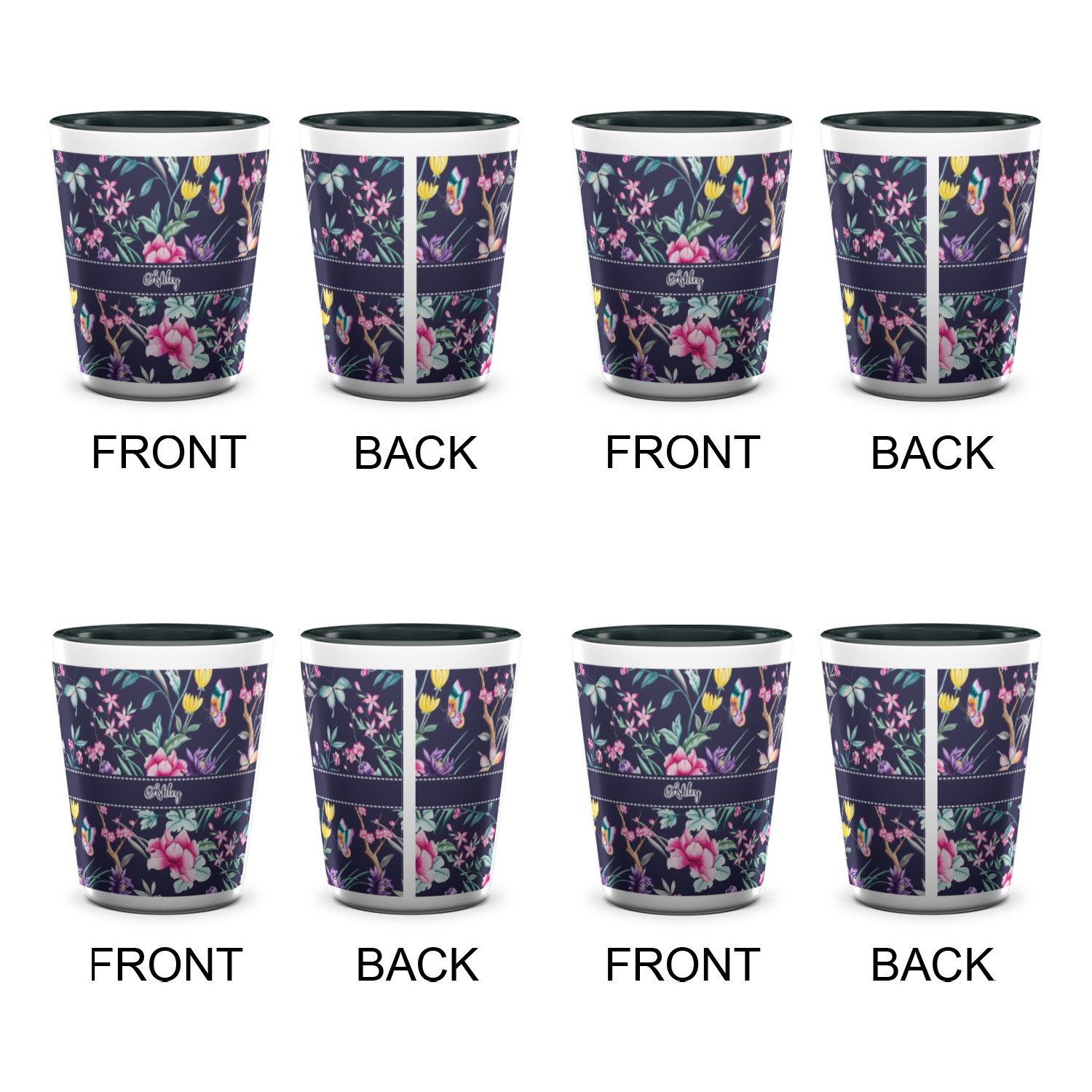 Made from ceramic these shot glasses are printed in full color with the design of your choice. These are a standard 1.5oz size and stand 2.25" tall. Available in a full white ceramic or a two-tone with a black color inside the shot glass. Buy a single or a set of 4, all of which can be designed separately to get you just what you want and need.