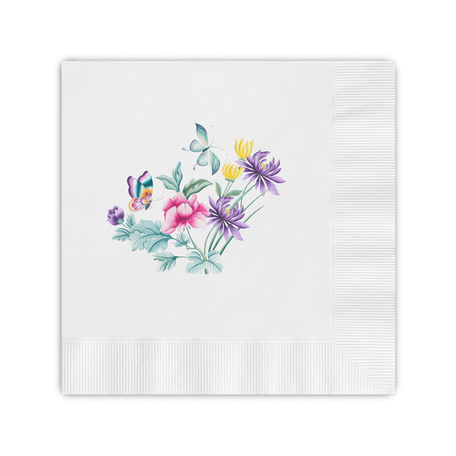 The beautiful chinoiserie design is done with a chinoiserie pattern that is hand painted watercolor flowers & butterflies. The pattern was inspired by motif and techniques of the far east and was popular during the 18th century.
