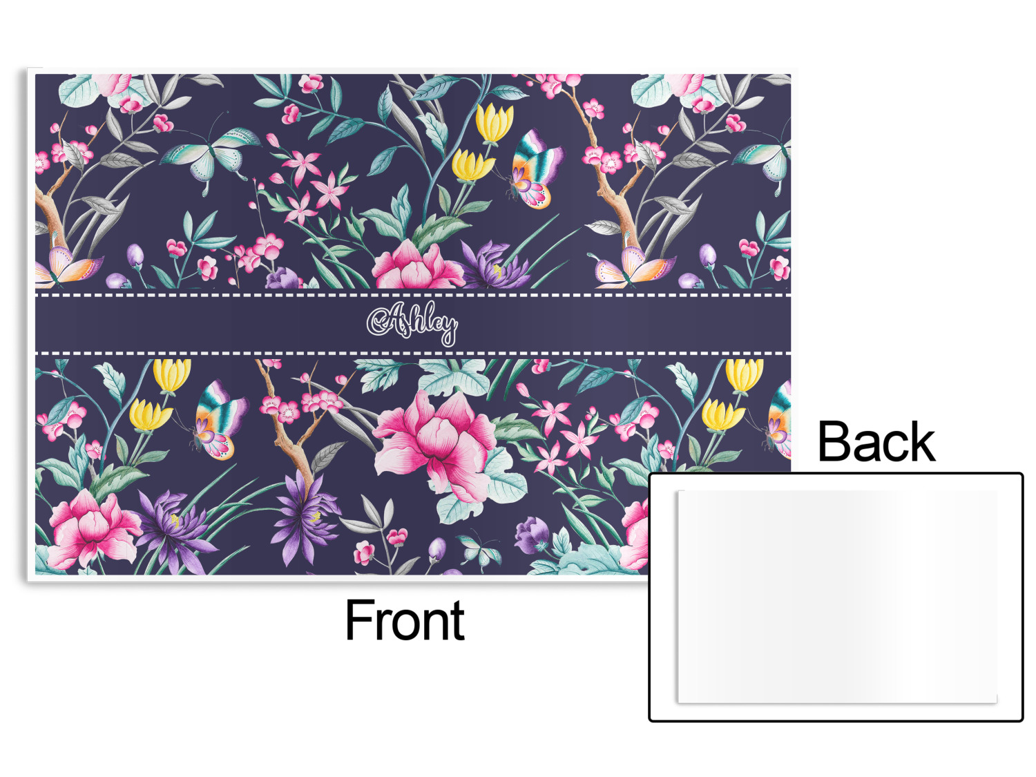 Our disposable paper placemats are 18 inches wide by 12 inches high and are printed in full color on 80lb cardstock on one side. The back is white. The placemats are designed as party decor and thus are meant for one time use.