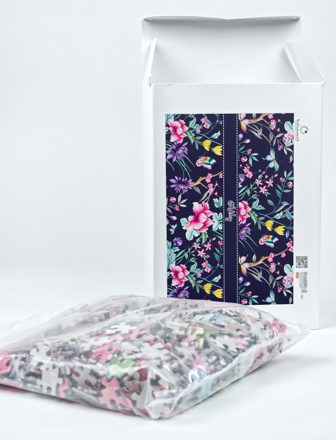 You can also upload your logo or art that you or your kids drew. To create more challenging jigsaw puzzles, you can create a pattern from with your logo or artwork. You can also add other elements such as text or personalization.