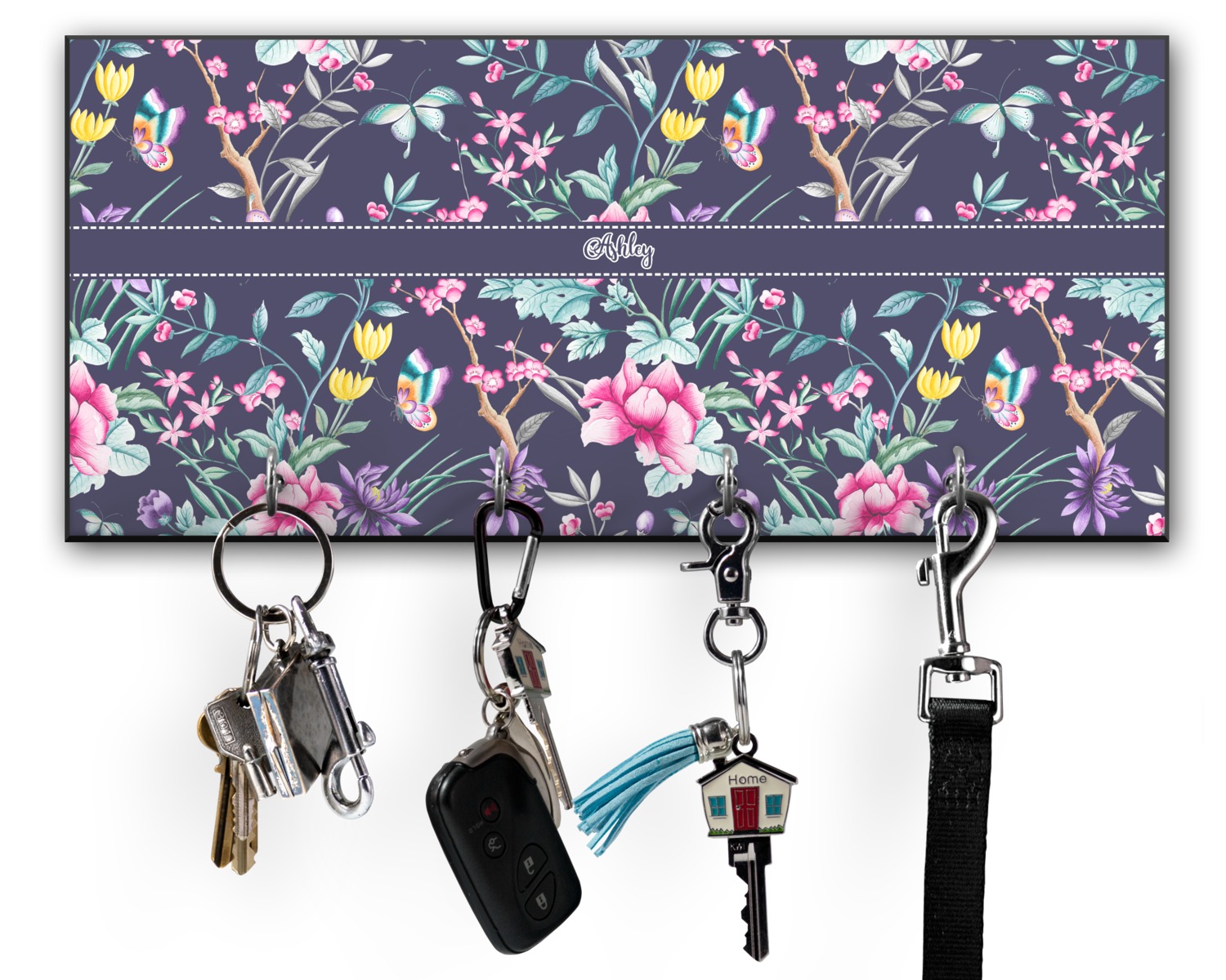 This 11" x 5" key hanger is made of sturdy wood and has four metal hooks lining the bottom. This is the perfect size for a family with several drivers. Not only can you hang keys on it though, but pet leashes and other small items. The board is black on the sides and back and is printed with the design of your choice on the front.