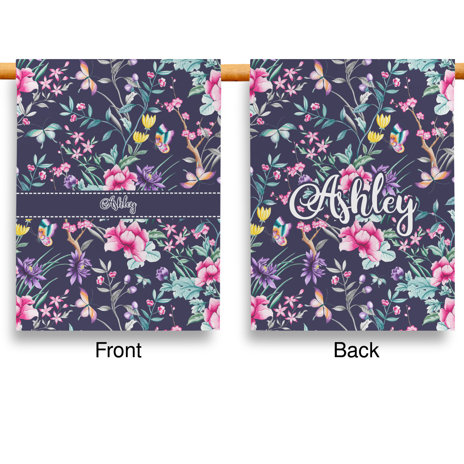 These custom garden flags are made of a durable, double-ply, polyester weave, allowing them to withstand the elements year round. The small flags measure at approximately 12 by 18 inches. The large flags measure out to 28 by 37 inches. You can order these decorative flags with your customization printed on the front only, or the front and back.