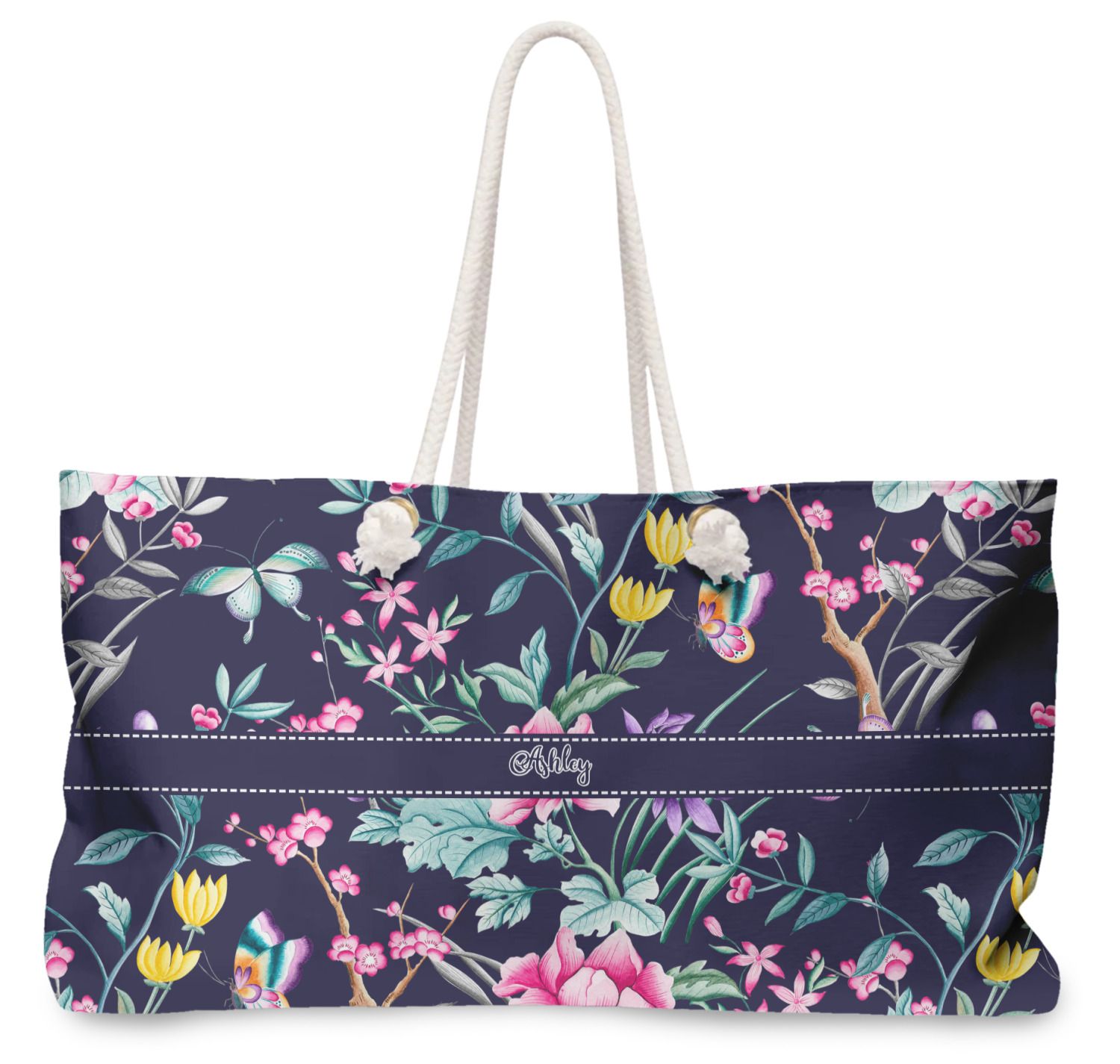 These weekender totes can be customized front and back. The totes are full all over print - so the choice of how background are endless - from beautiful floral or leaf patterns to geometrics or some classic Van Gogh artwork - the possibilities are endless. The totes can also be decorated with photos and logos.
