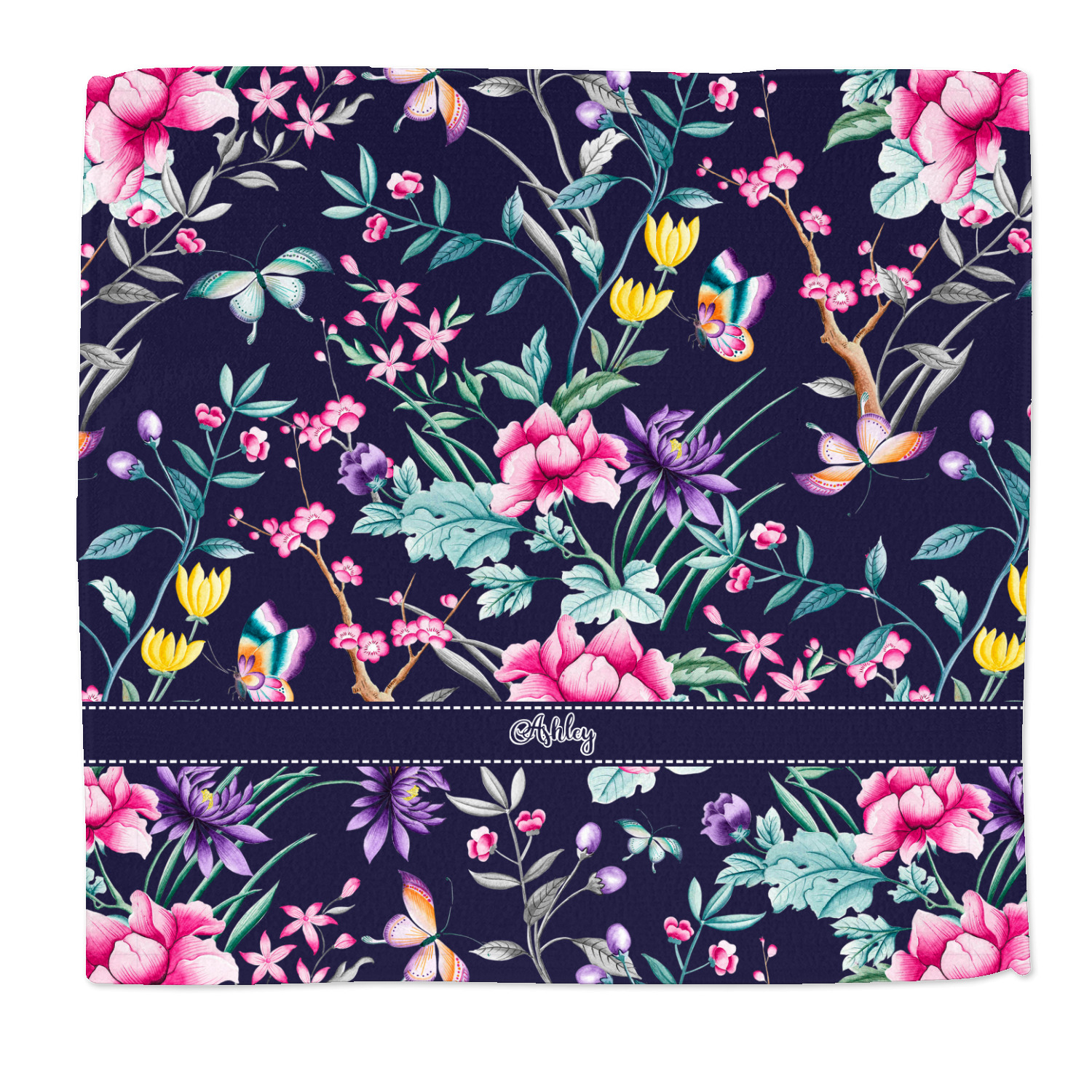 The beautiful chinoiserie design is done with a chinoiserie pattern that is hand painted watercolor flowers & butterflies. The pattern was inspired by motif and techniques of the far east and was popular during the 18th century.