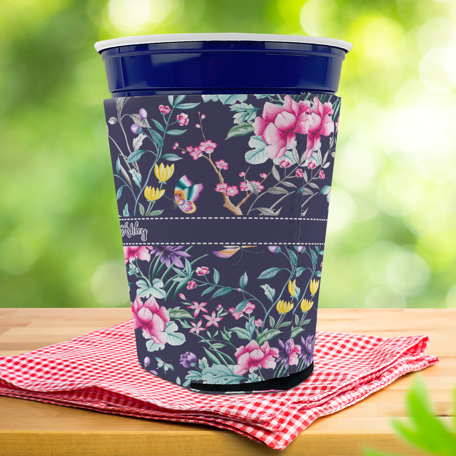 Made from neoprene with a polyester outer fabric and sewn seams, these premium quality party cup sleeves are very durable and will hold up to heavy use. They are available in 2 styles - with a bottom or just a sleeve to go around the outside of the tapered cup. The sleeve covers are about 4" tall and cover about 90% of the classic 16 oz. Solo cup.