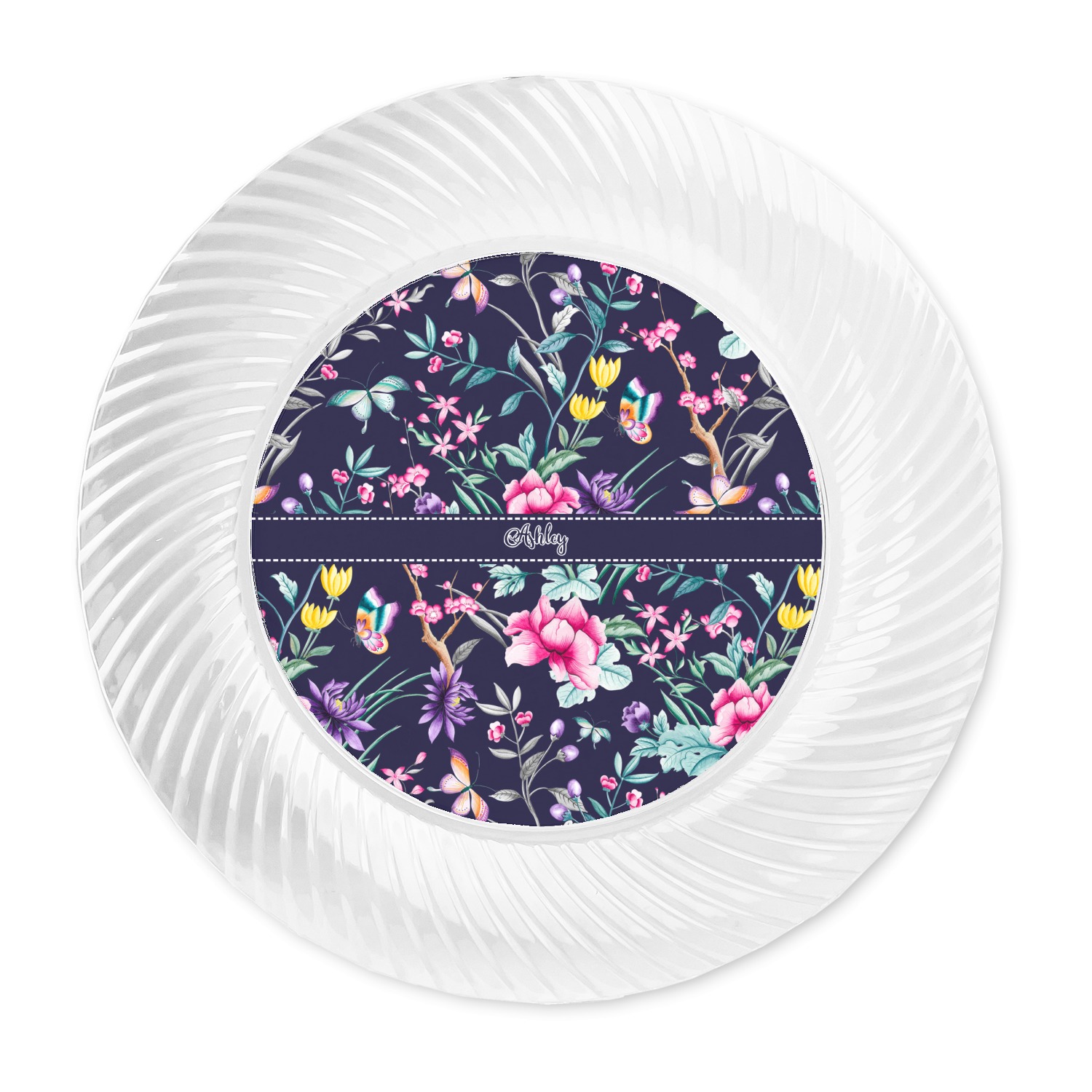 Made from a beautiful clear plastic plate as a base, your design is printed to the underside of the plate. The outside of these disposable plates has a classic swirl texture to it for a high quality look and feel.
