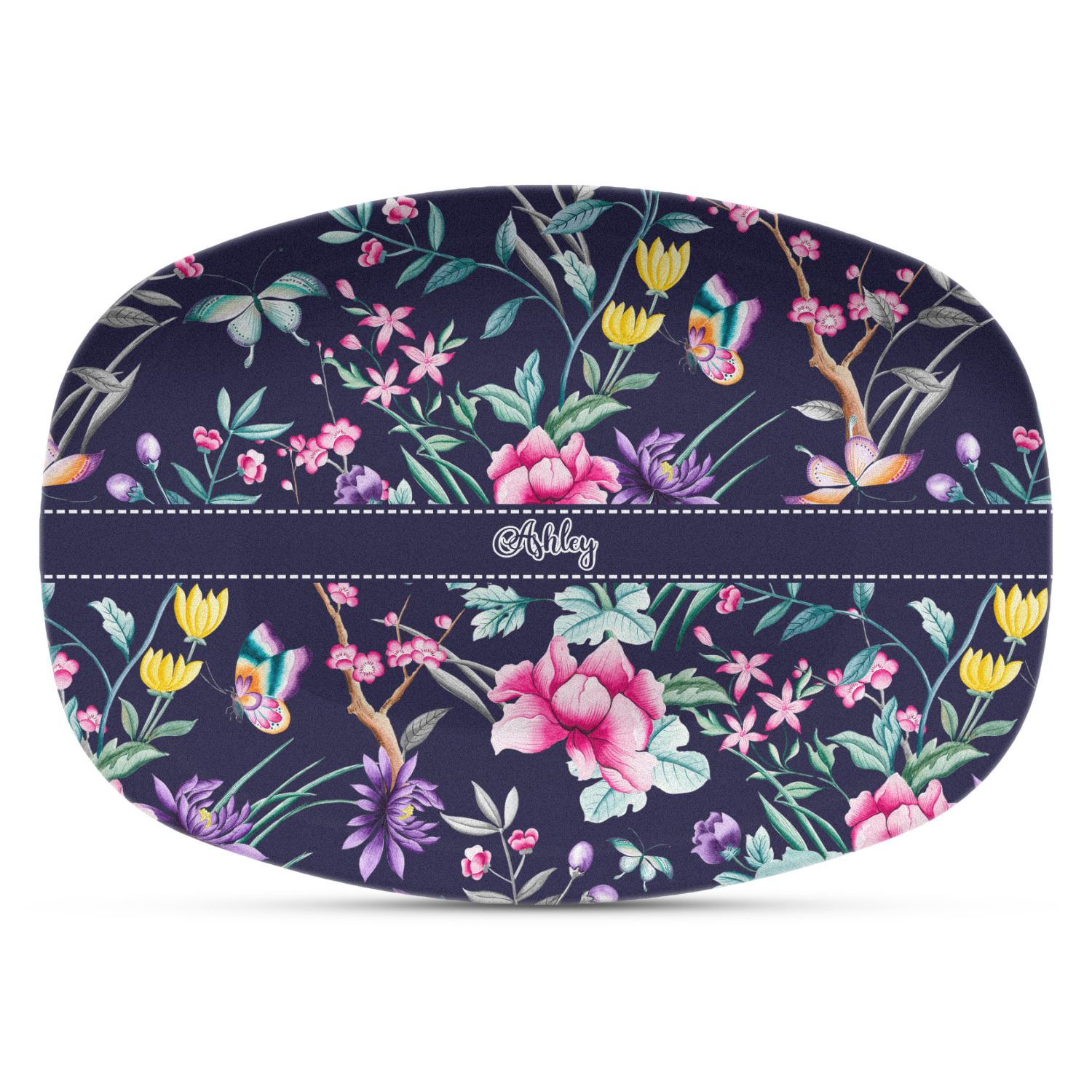These serving platters are made from a composite, thermo-set, polymer plastic that gives it the versatility, durability, and weight of a melamine platter, without any of the downsides of melamine. These personalized platters, can withstand temperatures up to 250 degrees Fahrenheit, for up to 60 minutes. No harmful chemicals, such as BPA, formaldehyde, and DEHPs were used in the manufacturing of this product. This large serving platter measures at 14" x 10.25", and is spacious enough to hold any of your appetizers or bite-sized desserts. The platter exhibits your personalization across the entirety of its front.