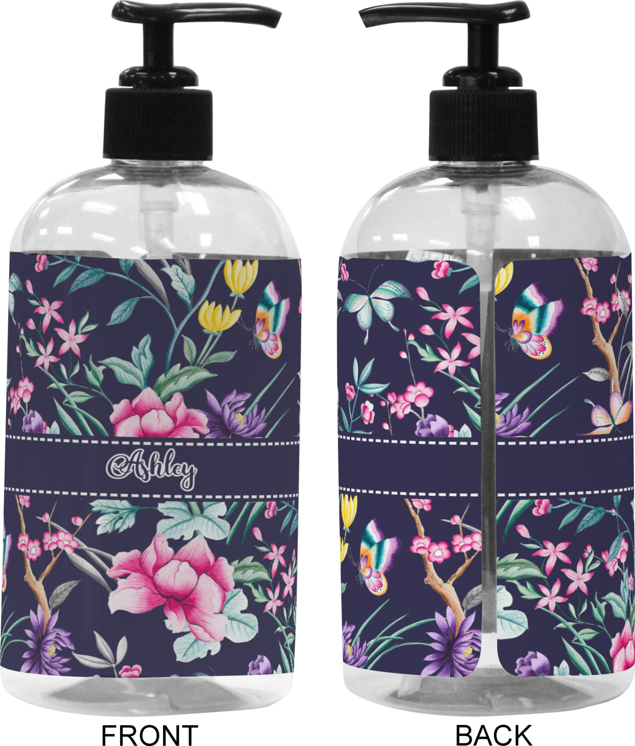 Orchids Designs for Plastic Soap / Lotion Dispensers - 16 oz - Large - Black