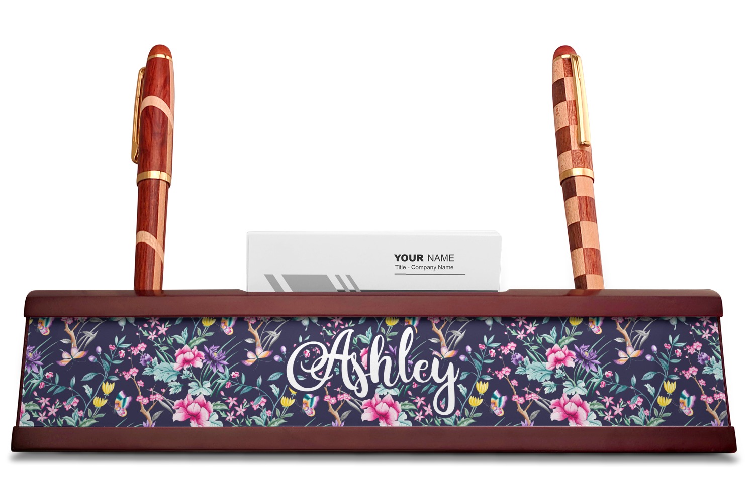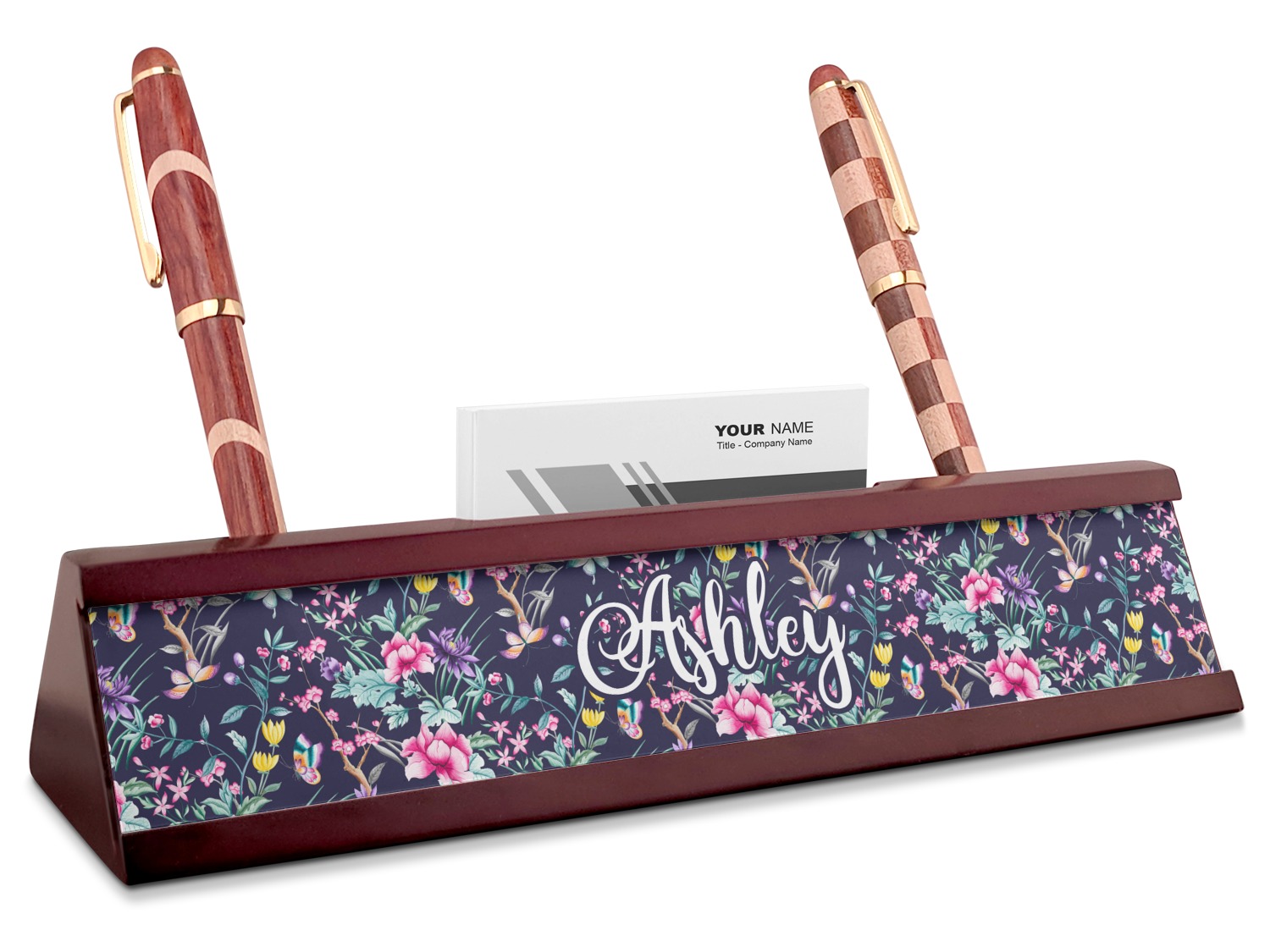 Orchids Designs for Red Mahogany Nameplates with Business Card Holder