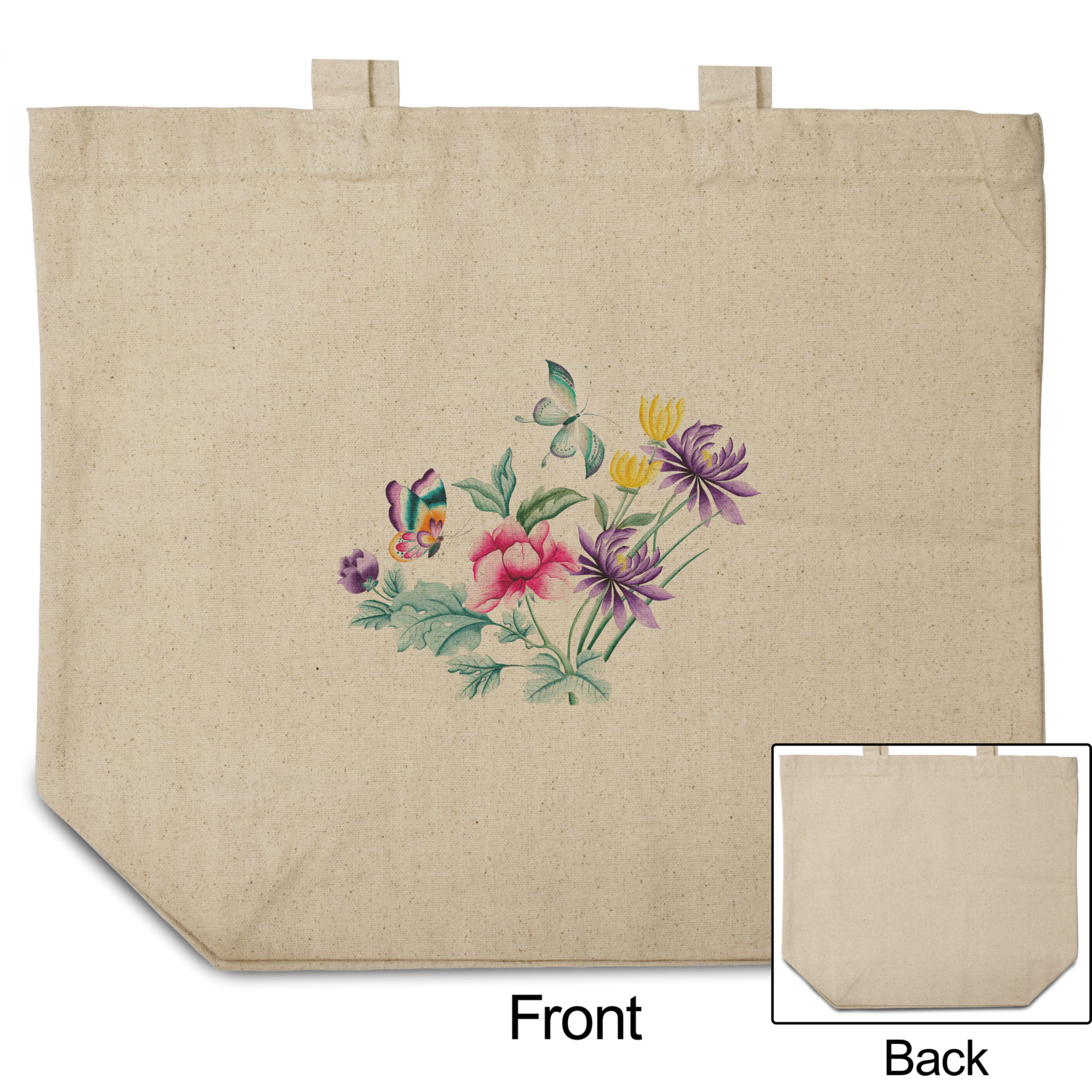 These cotton totes are washable and easy to care for, and they can be folded flat for storage. Your artwork, logo, or photo is printed in full color directly on the cotton tote in the front.