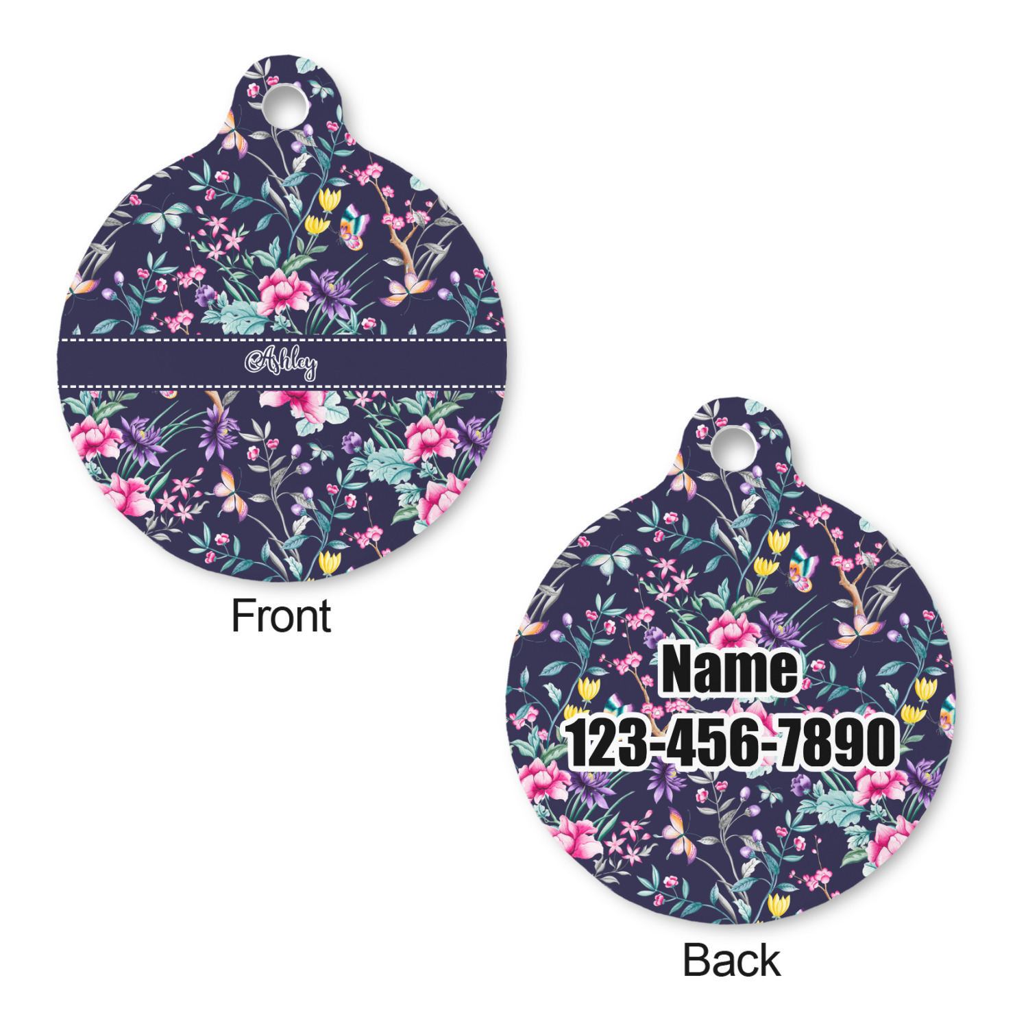 Go ahead; skip the monotony of plain pet ID tags with your very own, customized & personalized, round pet tag! This pet ID tag, fitting for both cats and dogs, will catch the eye of any onlooker (humans, canines, and felines, alike!) and accentuate your pet's individual personality.