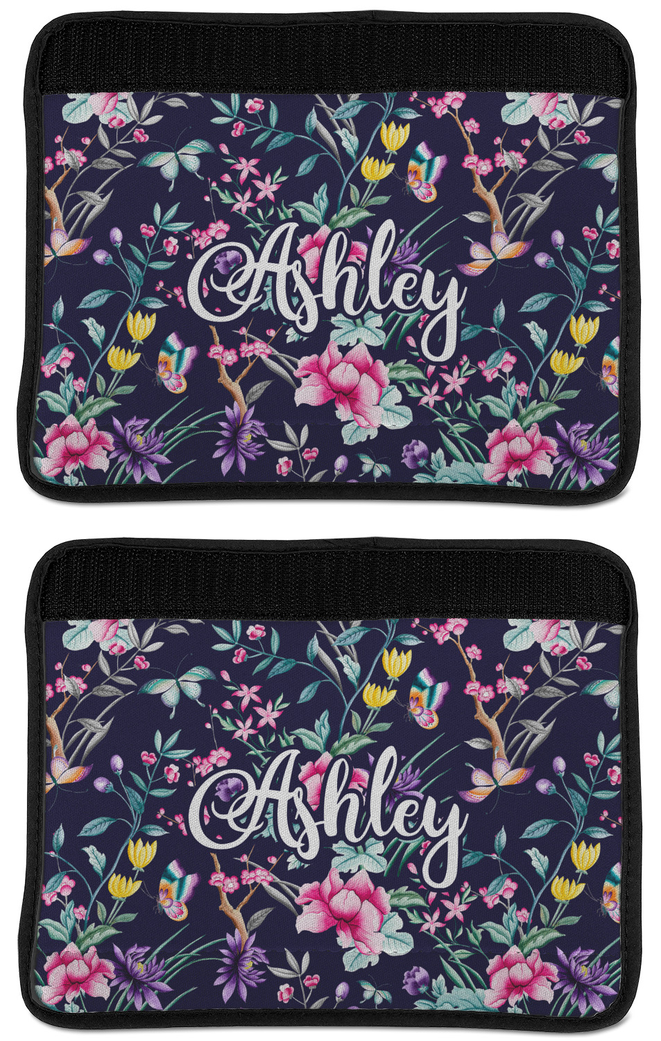 Made from neoprene, our seat belt strap covers wrap around the belt itself and have a Velcro tab for easy attachment and closure. The belt's edges are trimmed with a black polyester for a secure finish. Each cover is 9.5 by 7 inches when open and 9.5 by 2.5 inches when closed. We print your personalized design on the face of the seat belt pad.