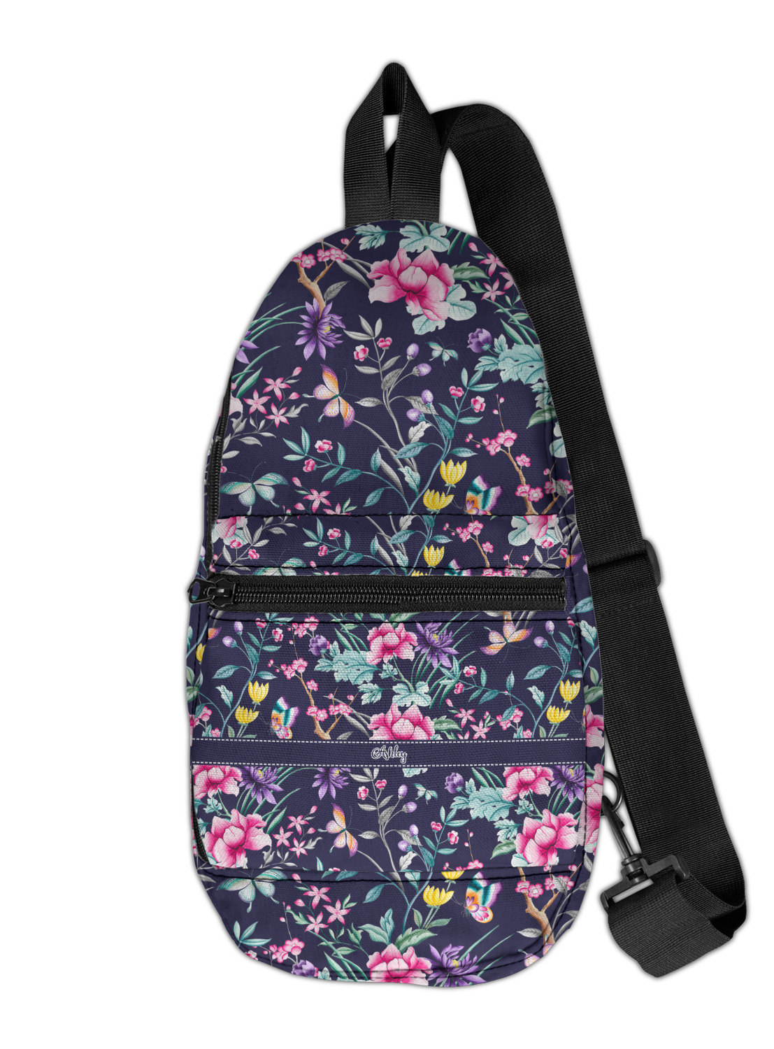 These sling bags are made from a durable polyester canvas. The fabric is printed with your design, then cut and hand sewn right here in the USA.