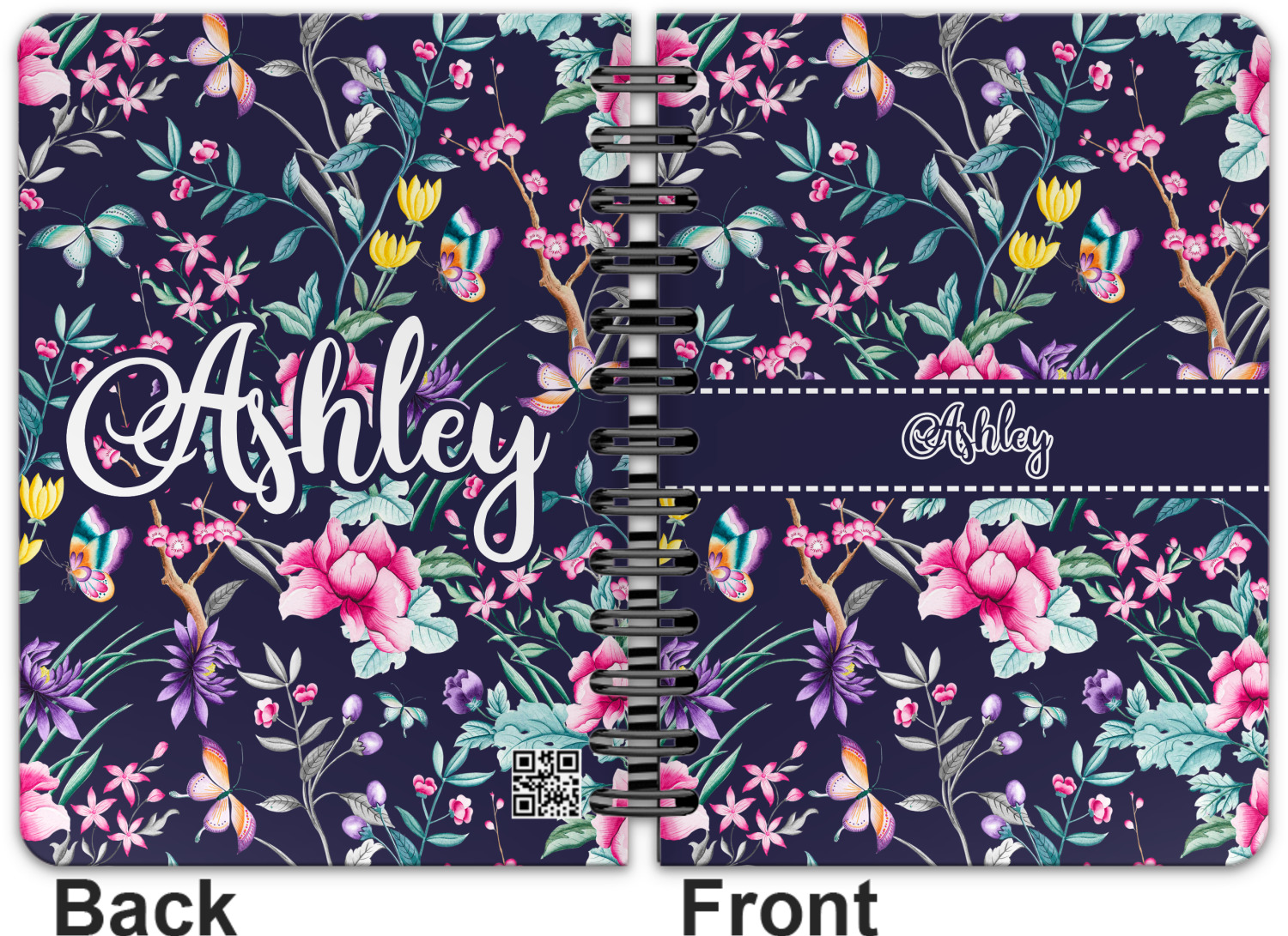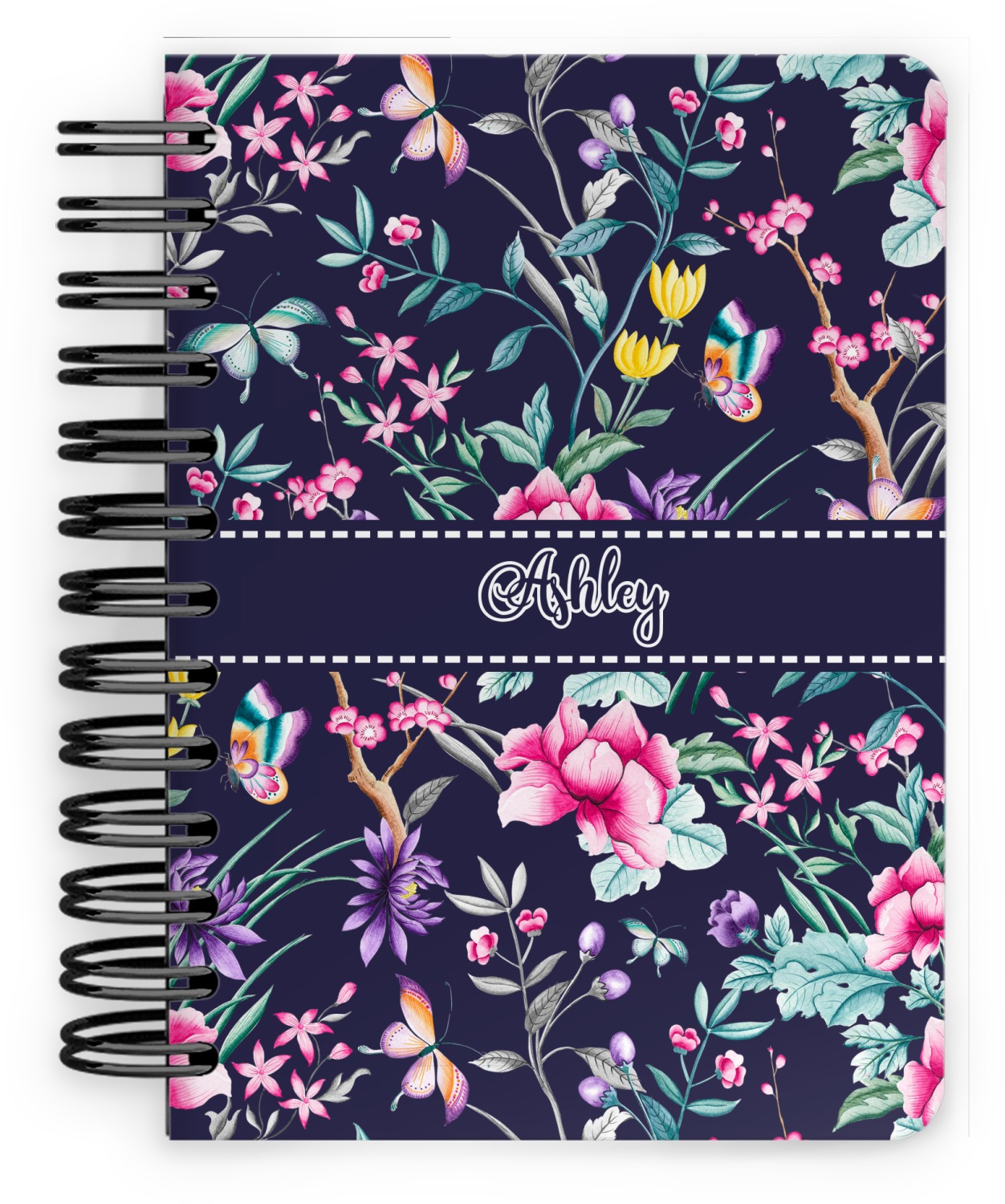 This spiral notebook includes 75 sheets of thick, ruled paper. The front and back of this custom notebook is made of a robust, laminate, plastic covering. We print your personalization on these two panels, underneath a glossy finish, which emphasizes the colors of your design. The two panels and the sheets of paper are held together by a sturdy, black coil. The paper within your bound notebook is perforated for easy, clean tearing.