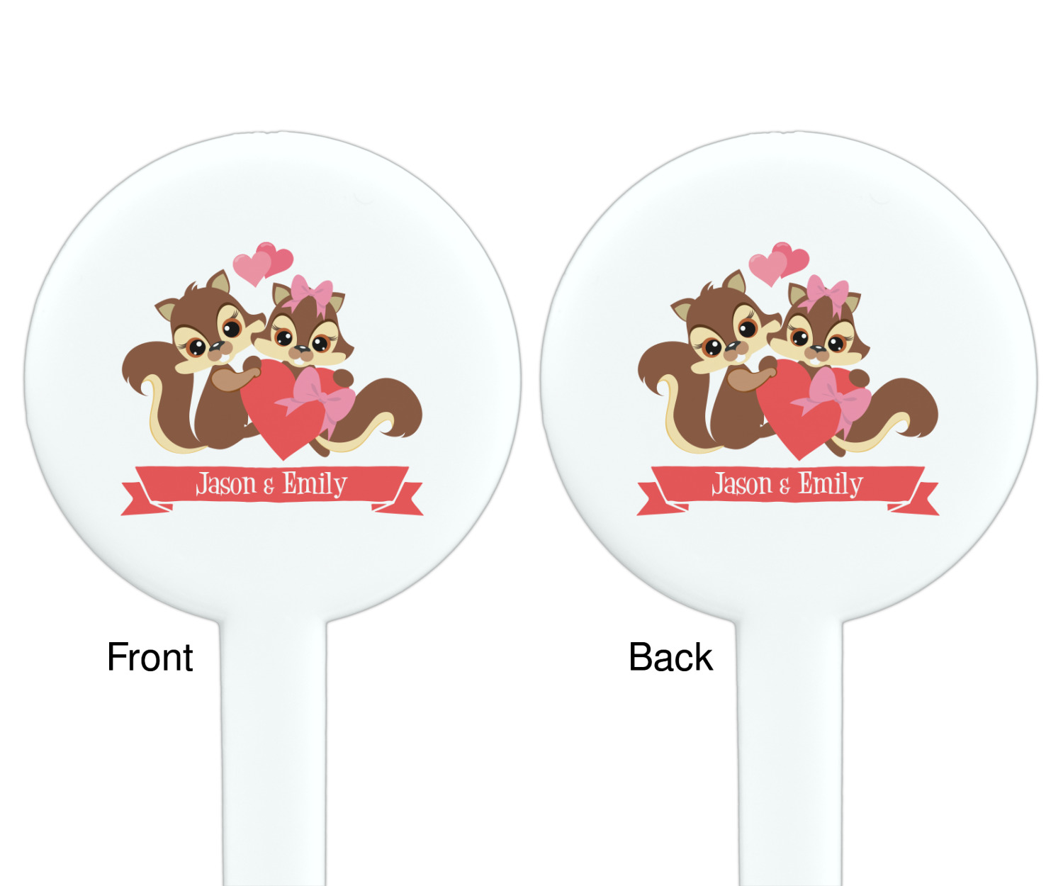 This Raccoon Couple Design is perfect for Valentine's Day or even for a newly engaged or married couple. It features a damask background in light pink with a raccoon couple in front holding hearts. The female has a bow on her head. There is a ribbon under the couple that can be customized with the couples names or even Mr. & Mrs. Your Text.