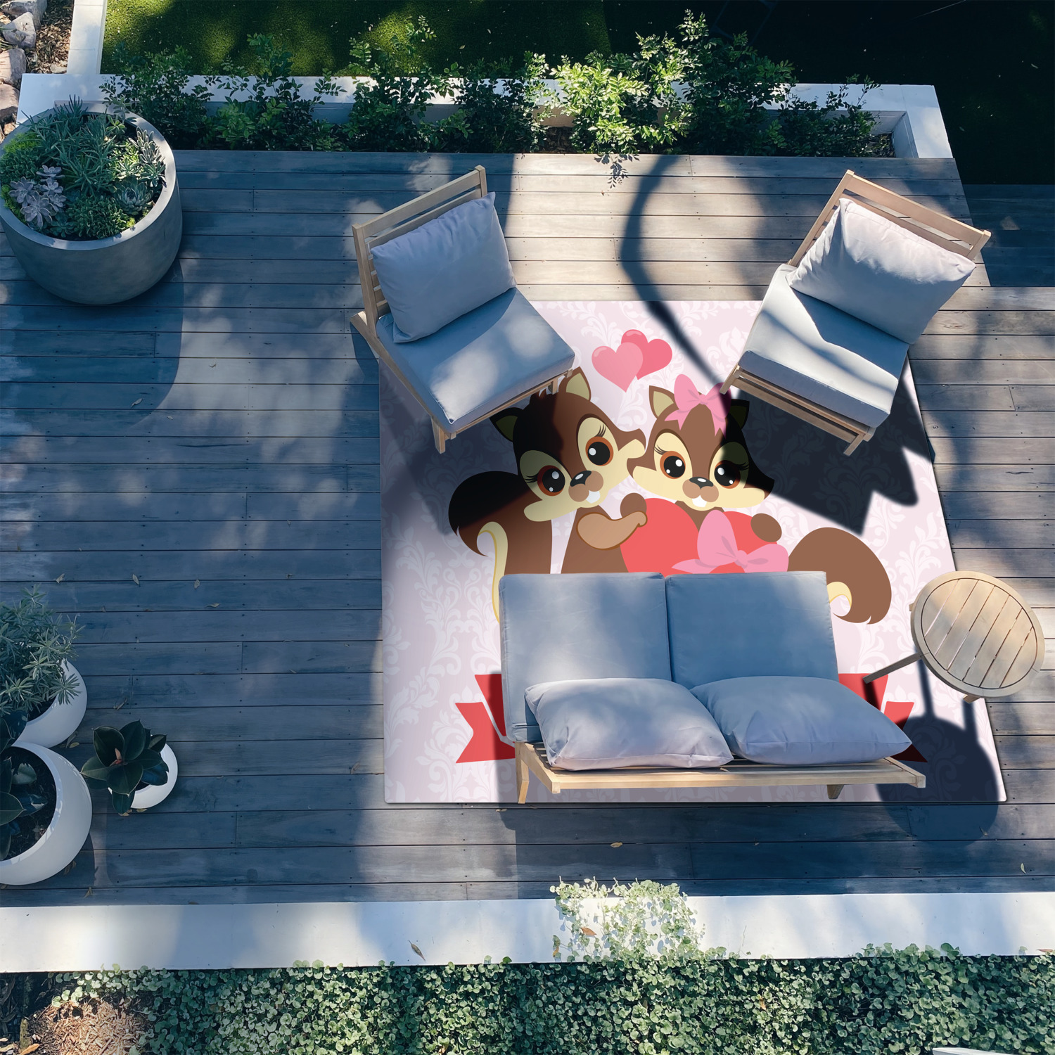 Our custom patio area rugs are velvety soft and smooth, with a short pile, beautiful sewn corners and edges for a refined and exquisite finished look. The poly chenille face is printed with your design and is sure to brighten up any room with its fabulous look. They have just enough cushion to feel comfortable under foot but not soak up water in the weather and offer a quick drying material.