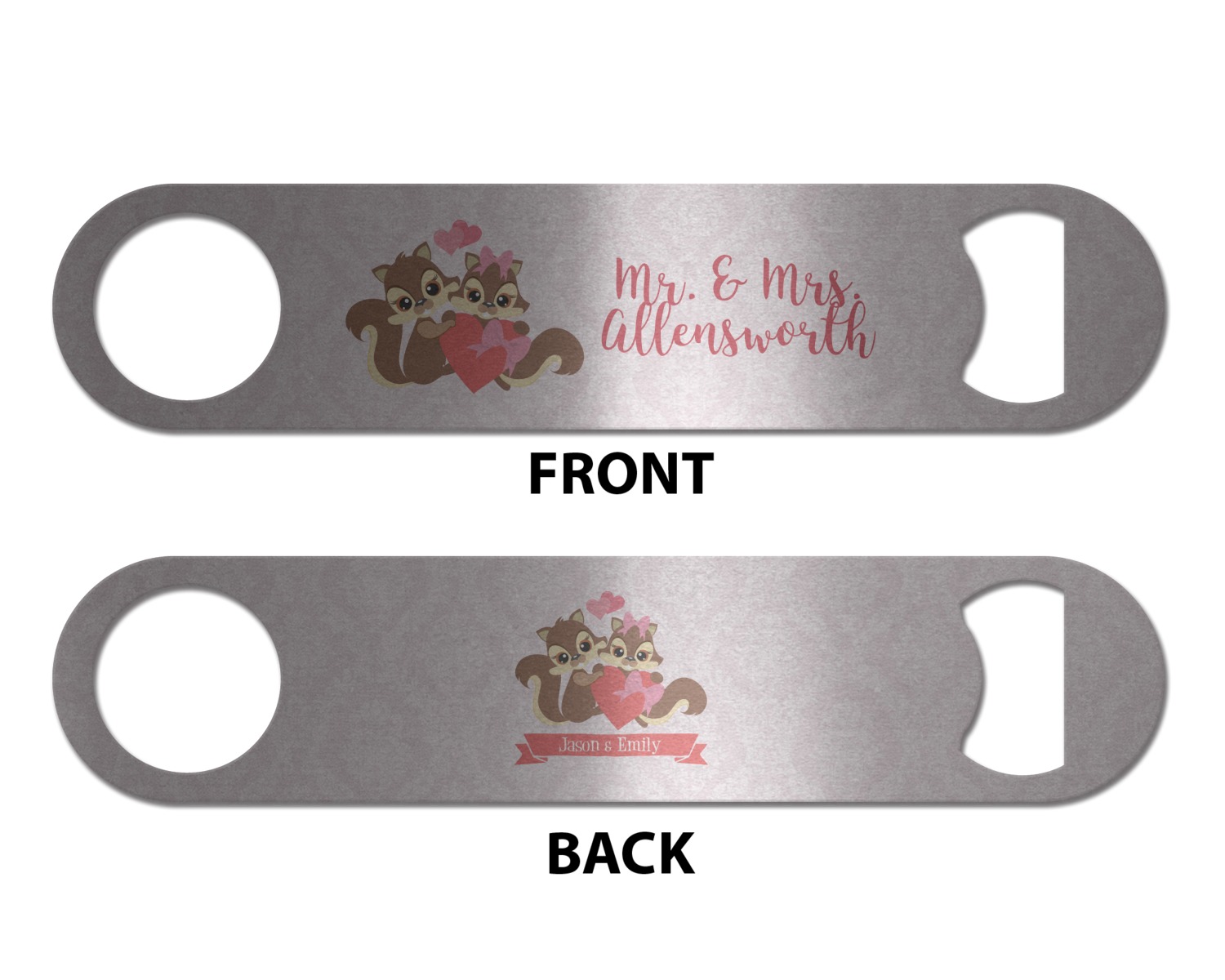 Stop struggling with the caps or your bottled beverages by purchasing one of our personalized bottle openers! These wrench-like custom bar blades are built to last. Customize one for your home's bar, or as a practical gift for a loved one!