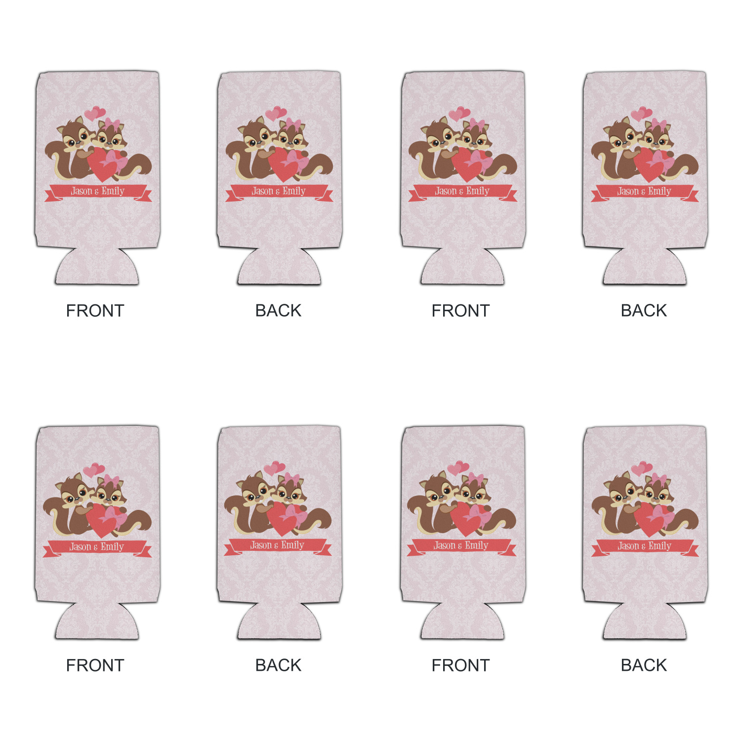 This Raccoon Couple Design is perfect for Valentine's Day or even for a newly engaged or married couple. It features a damask background in light pink with a raccoon couple in front holding hearts. The female has a bow on her head. There is a ribbon under the couple that can be customized with the couples names or even Mr. & Mrs. Your Text.