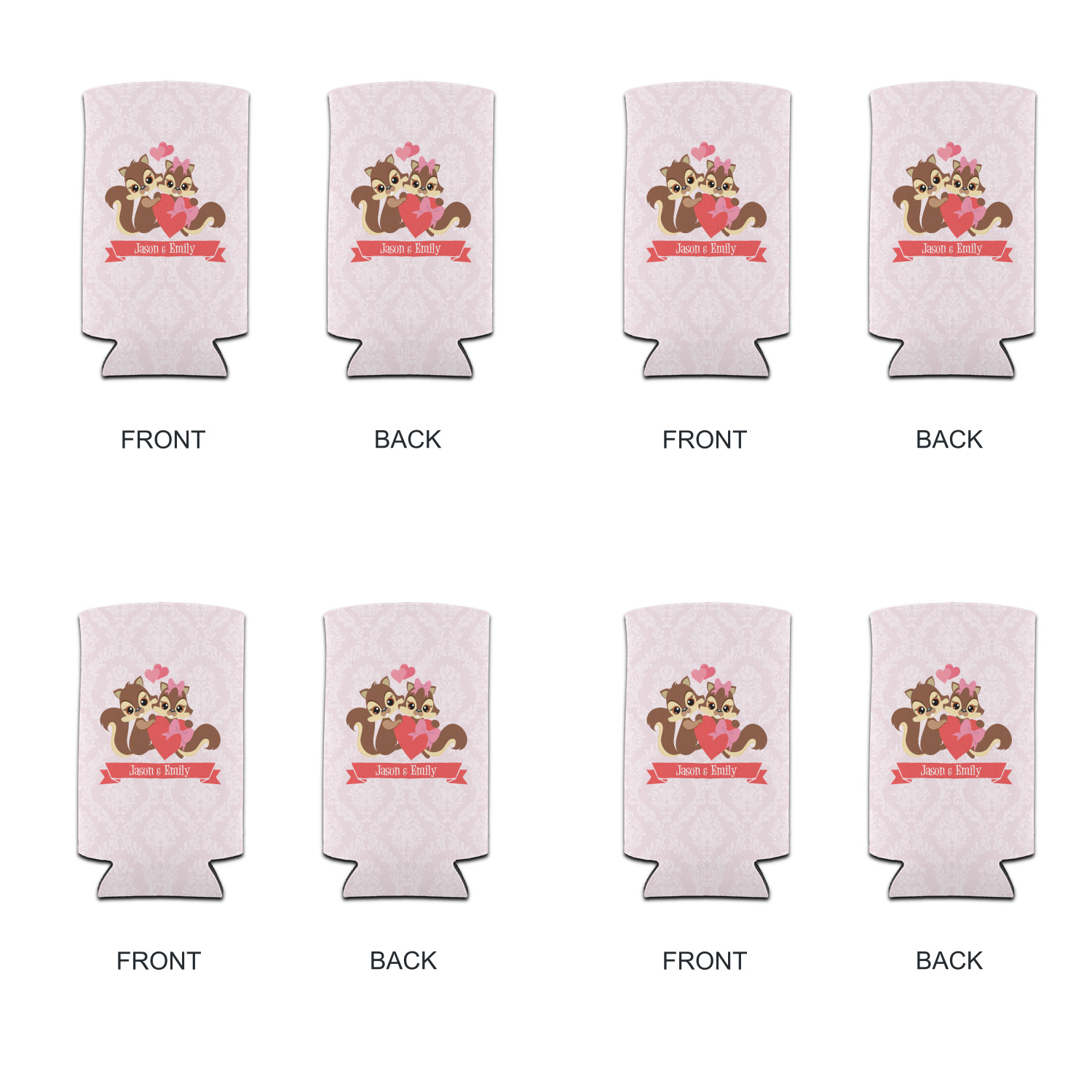 This Raccoon Couple Design is perfect for Valentine's Day or even for a newly engaged or married couple. It features a damask background in light pink with a raccoon couple in front holding hearts. The female has a bow on her head. There is a ribbon under the couple that can be customized with the couples names or even Mr. & Mrs. Your Text.