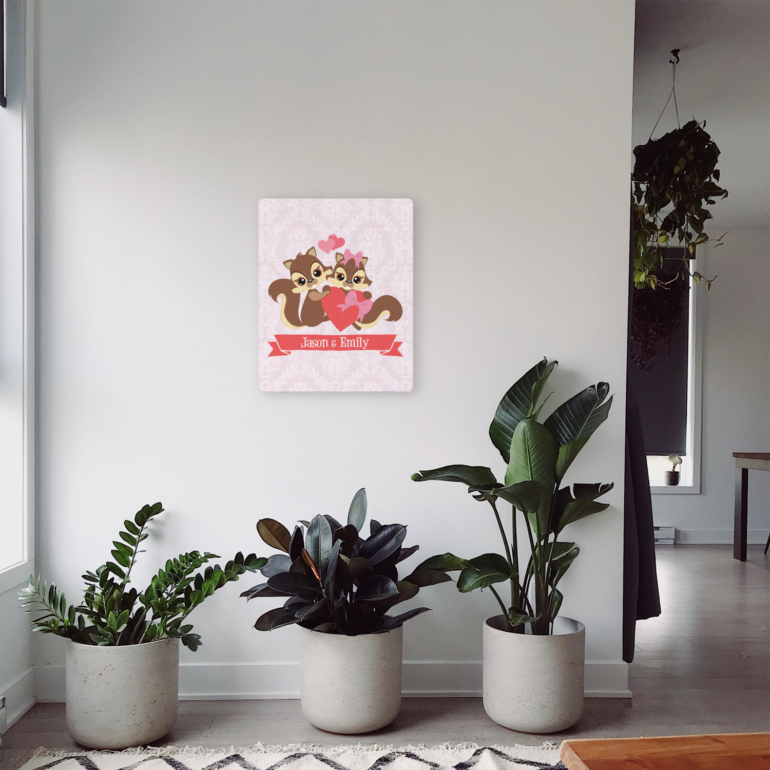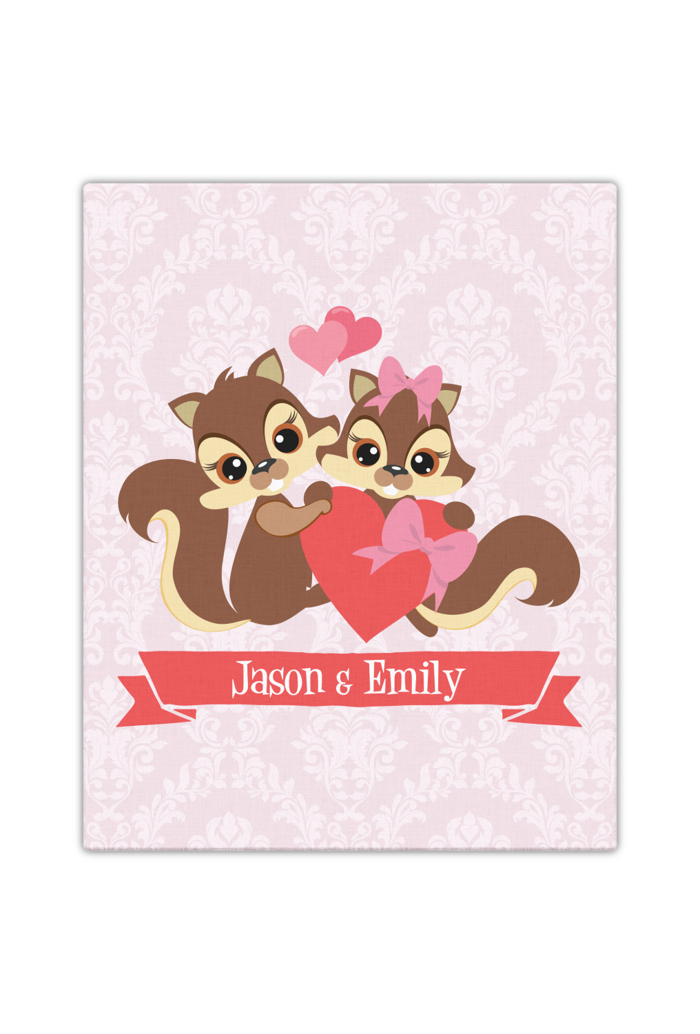 This Raccoon Couple Design is perfect for Valentine's Day or even for a newly engaged or married couple. It features a damask background in light pink with a raccoon couple in front holding hearts. The female has a bow on her head. There is a ribbon under the couple that can be customized with the couples names or even Mr. & Mrs. Your Text.