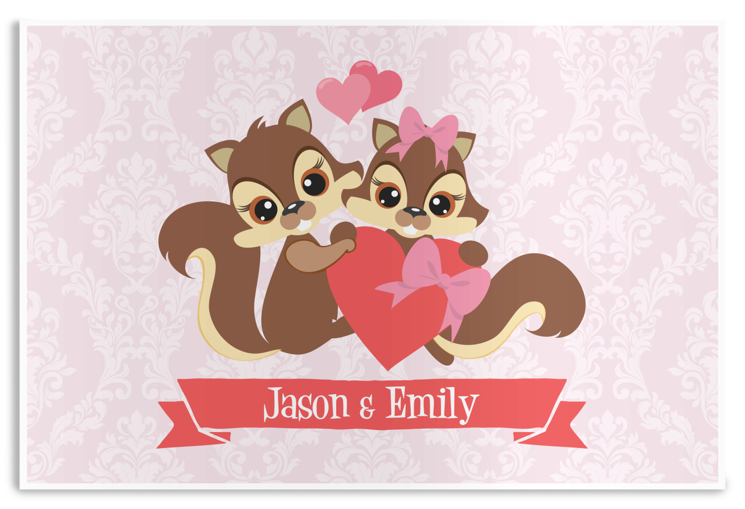 This Raccoon Couple Design is perfect for Valentine's Day or even for a newly engaged or married couple. It features a damask background in light pink with a raccoon couple in front holding hearts. The female has a bow on her head. There is a ribbon under the couple that can be customized with the couples names or even Mr. & Mrs. Your Text.