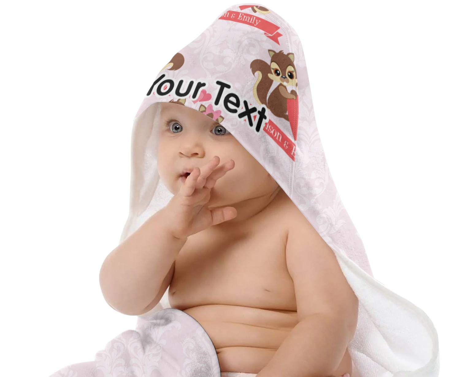 This baby towel is made with a plush microfiber velour and cotton terry. and thus will be soft and gentle against your newborn's skin, but also, very absorbent. Your customization is printed across the front & the hood, while the inside is a classy white.