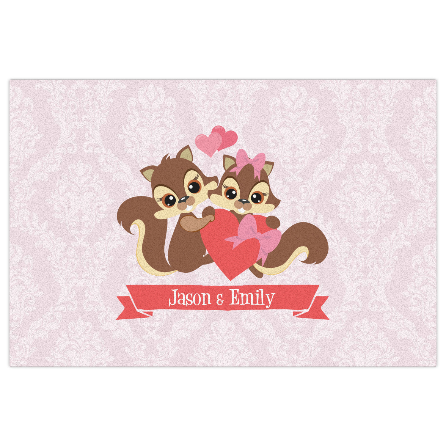 This Raccoon Couple Design is perfect for Valentine's Day or even for a newly engaged or married couple. It features a damask background in light pink with a raccoon couple in front holding hearts. The female has a bow on her head. There is a ribbon under the couple that can be customized with the couples names or even Mr. & Mrs. Your Text.