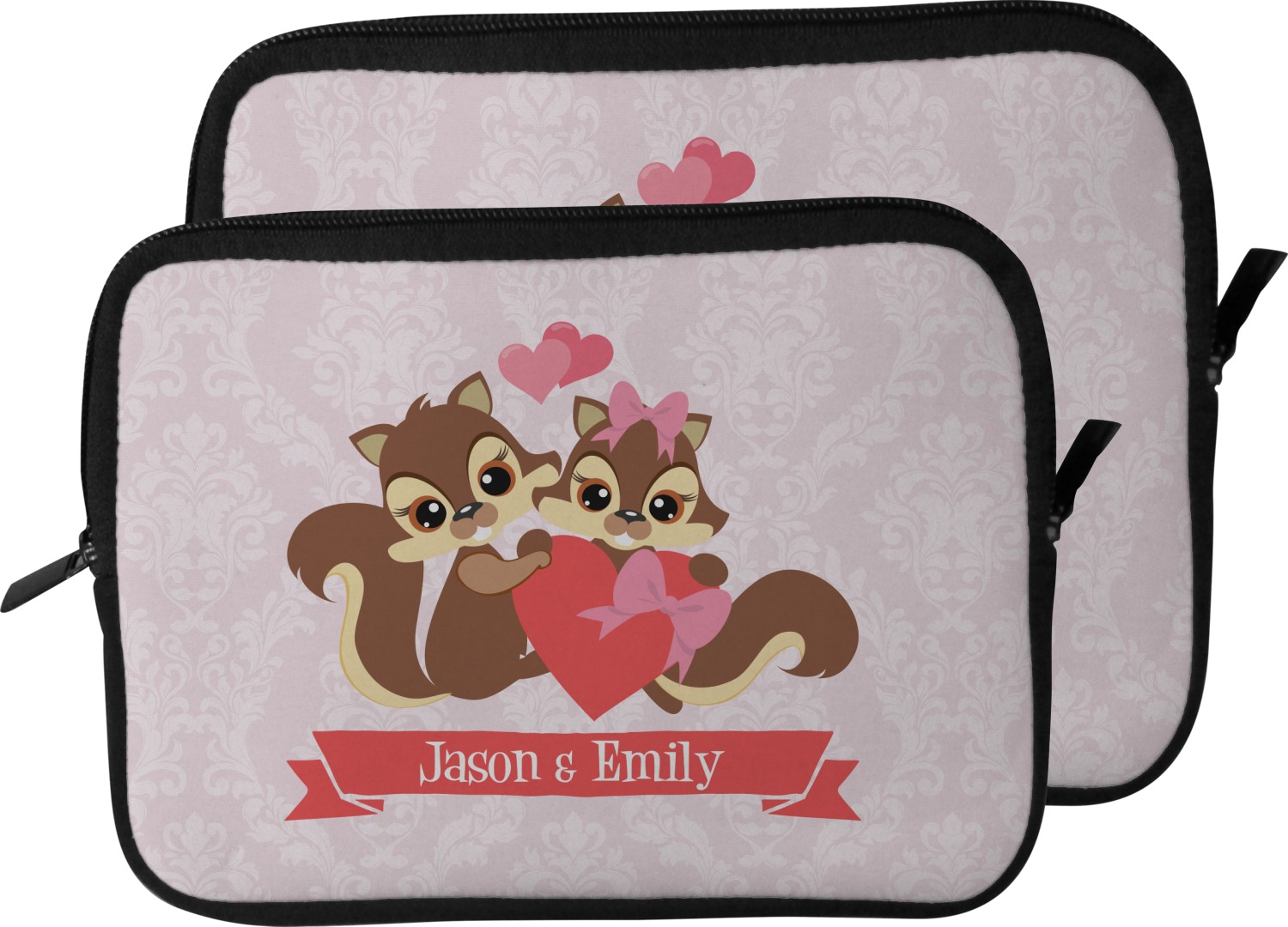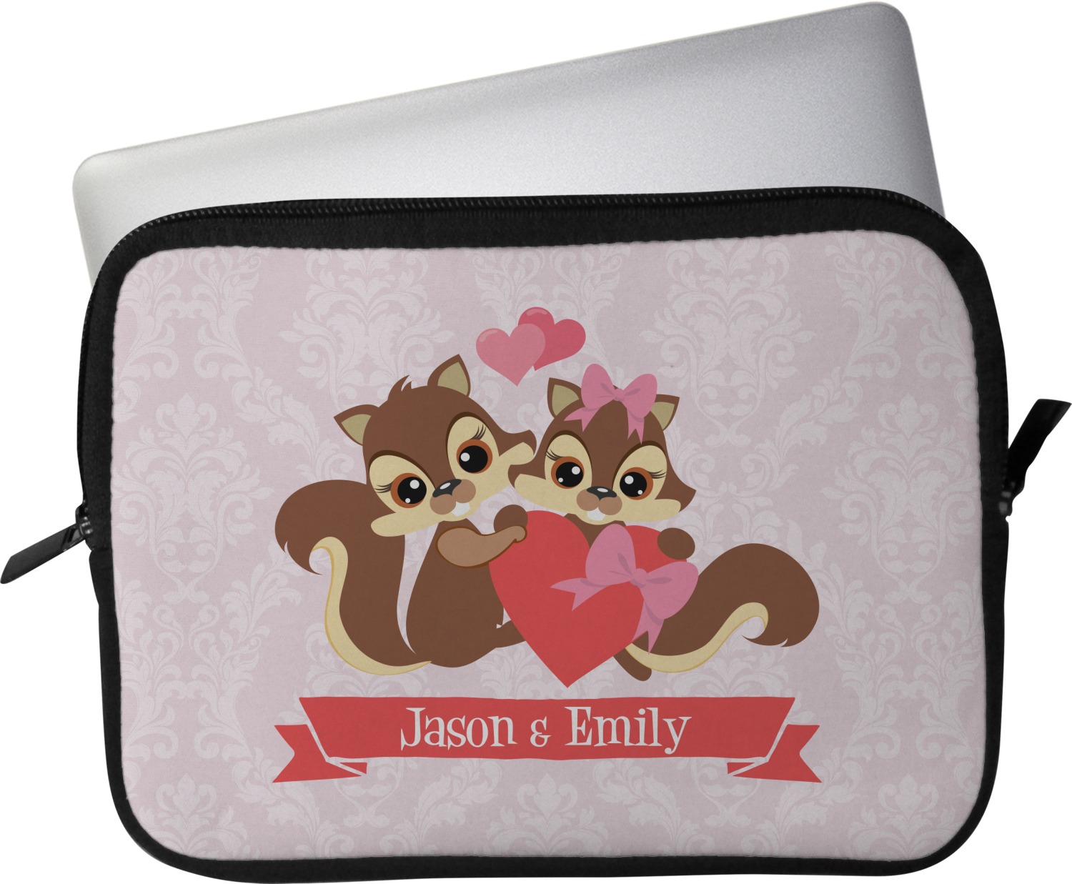 These laptop covers are built from a water-resistant, cushioned neoprene. We display your personalized design on the front of this computer sleeve, while the other sides are simply the black color of the neoprene fabric. A zipper lines the top half of this case, for direct access to your device. For added protection, the interior of this neoprene laptop sleeve is lined with a padded, minky-like material.