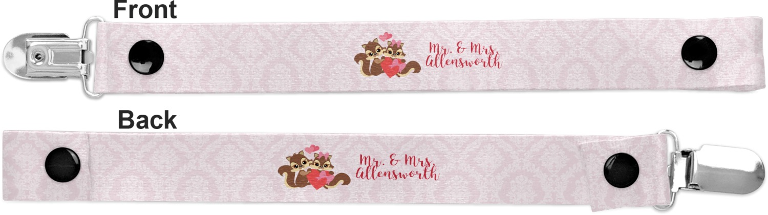 This personalized pacifier clip is the ideal size and measures at approximately 7.5 inches in length, when either end is snapped closed. On one end, you'll find a snap button. This button of your baby's pacifier holder is what can be attached to their pacifier to hold is securely in place. Simply open the snap, slip it through the pacifier opening, and snap it back into place. On the opposite end of this baby pacifier holder, you'll find a metal clip that can secure to a baby's collar or sleeve. This clip ensures that the strap stays in place, and that your baby's pacifier is always on hand.