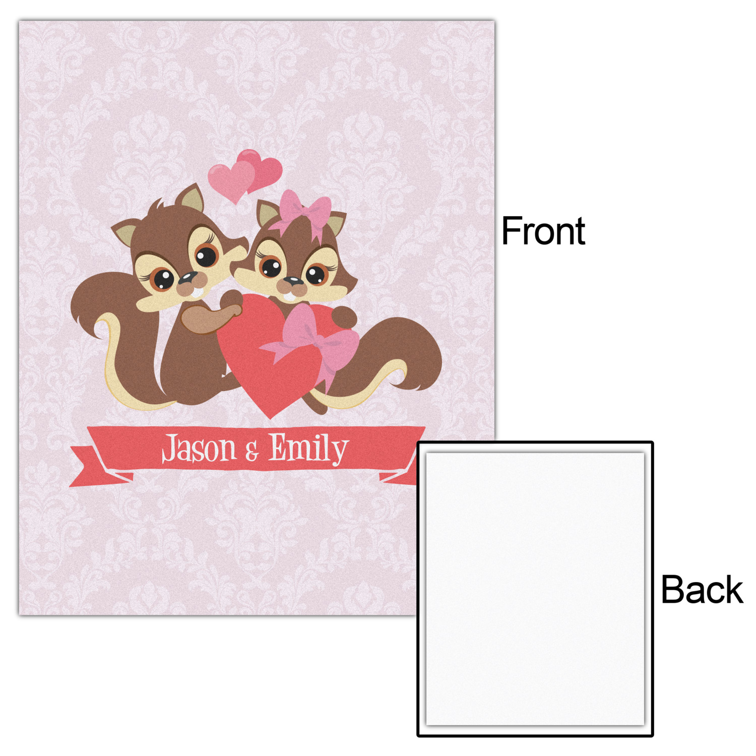 This Raccoon Couple Design is perfect for Valentine's Day or even for a newly engaged or married couple. It features a damask background in light pink with a raccoon couple in front holding hearts. The female has a bow on her head. There is a ribbon under the couple that can be customized with the couples names or even Mr. & Mrs. Your Text.