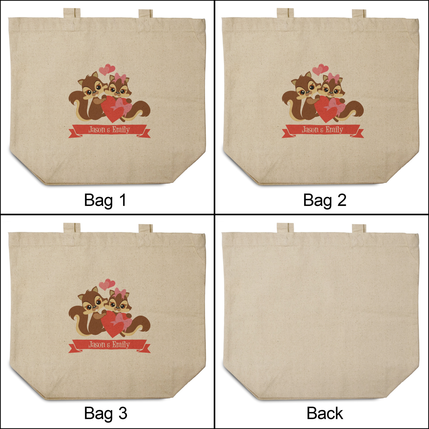 These cotton totes are washable and easy to care for, and they can be folded flat for storage. Your artwork, logo, or photo is printed in full color directly on the cotton tote in the front.