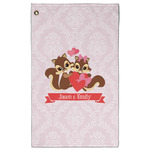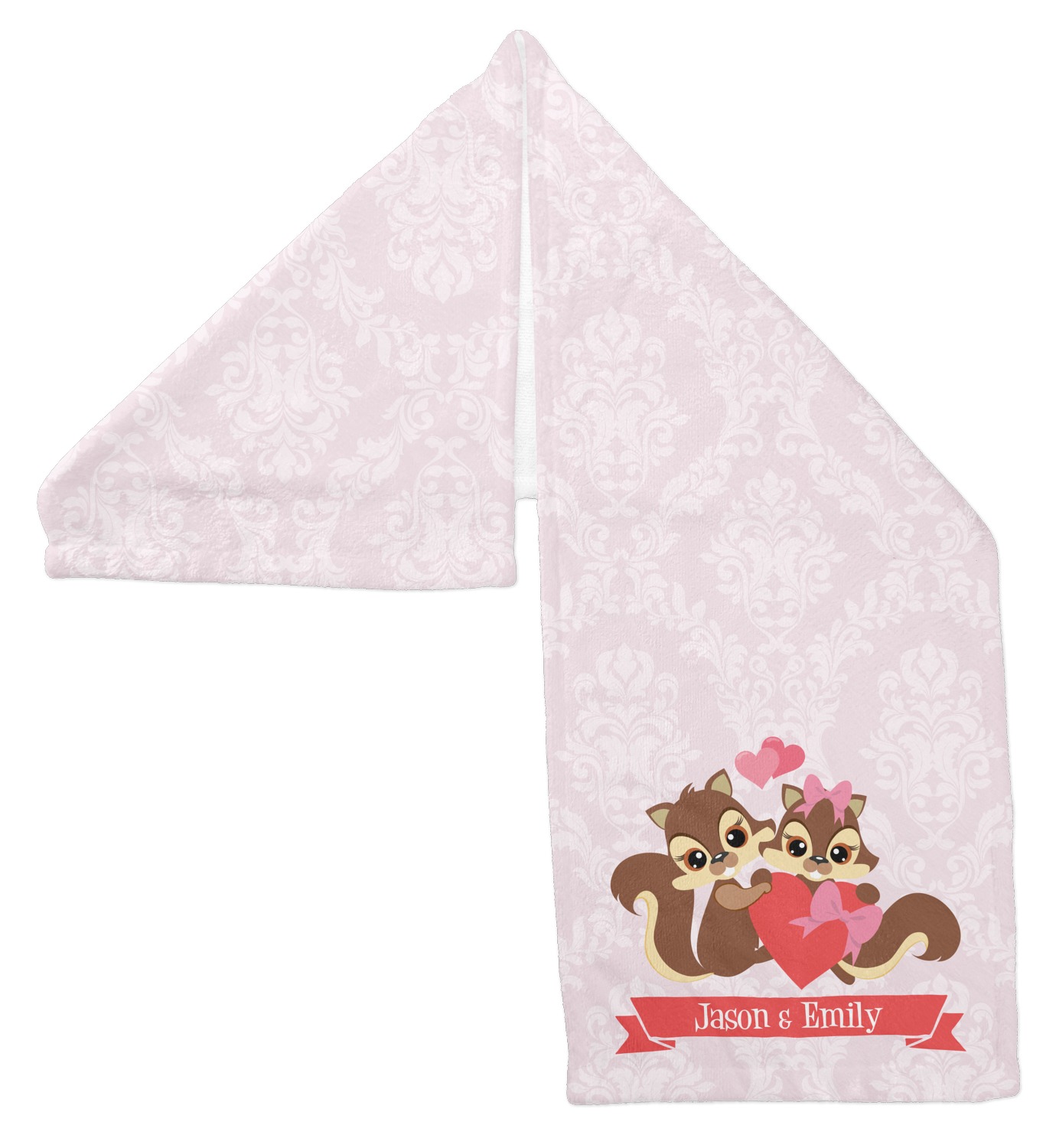 This Raccoon Couple Design is perfect for Valentine's Day or even for a newly engaged or married couple. It features a damask background in light pink with a raccoon couple in front holding hearts. The female has a bow on her head. There is a ribbon under the couple that can be customized with the couples names or even Mr. & Mrs. Your Text.
