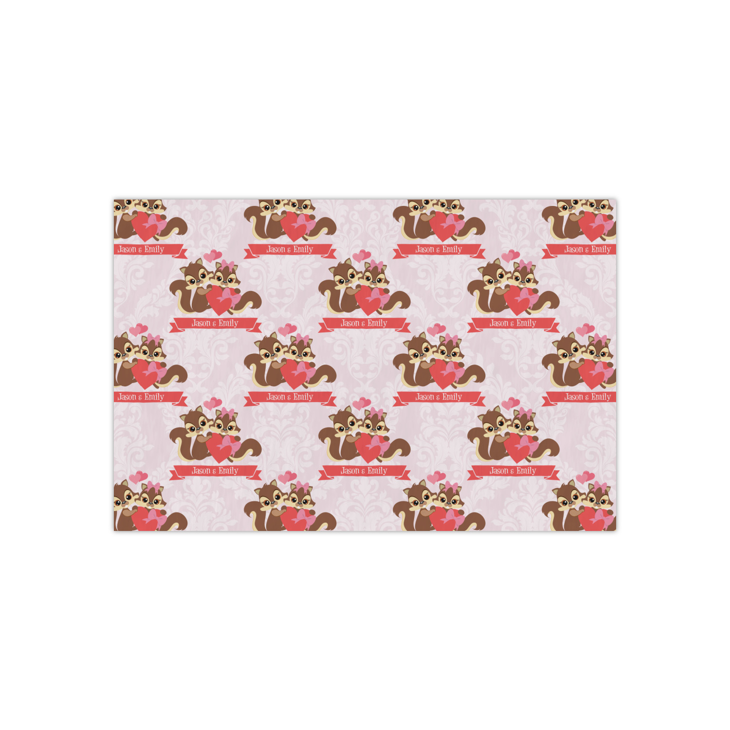 This Raccoon Couple Design is perfect for Valentine's Day or even for a newly engaged or married couple. It features a damask background in light pink with a raccoon couple in front holding hearts. The female has a bow on her head. There is a ribbon under the couple that can be customized with the couples names or even Mr. & Mrs. Your Text.