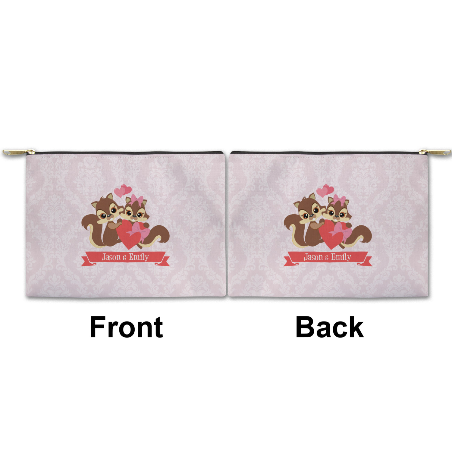 You can design both the front and the back of the pouch - same design, two complementary designs or two totally different designs - the choice is yours! We offer many different personalization styles i.e. name, name & initial, monograms - so the choice to personalize is also yours.
