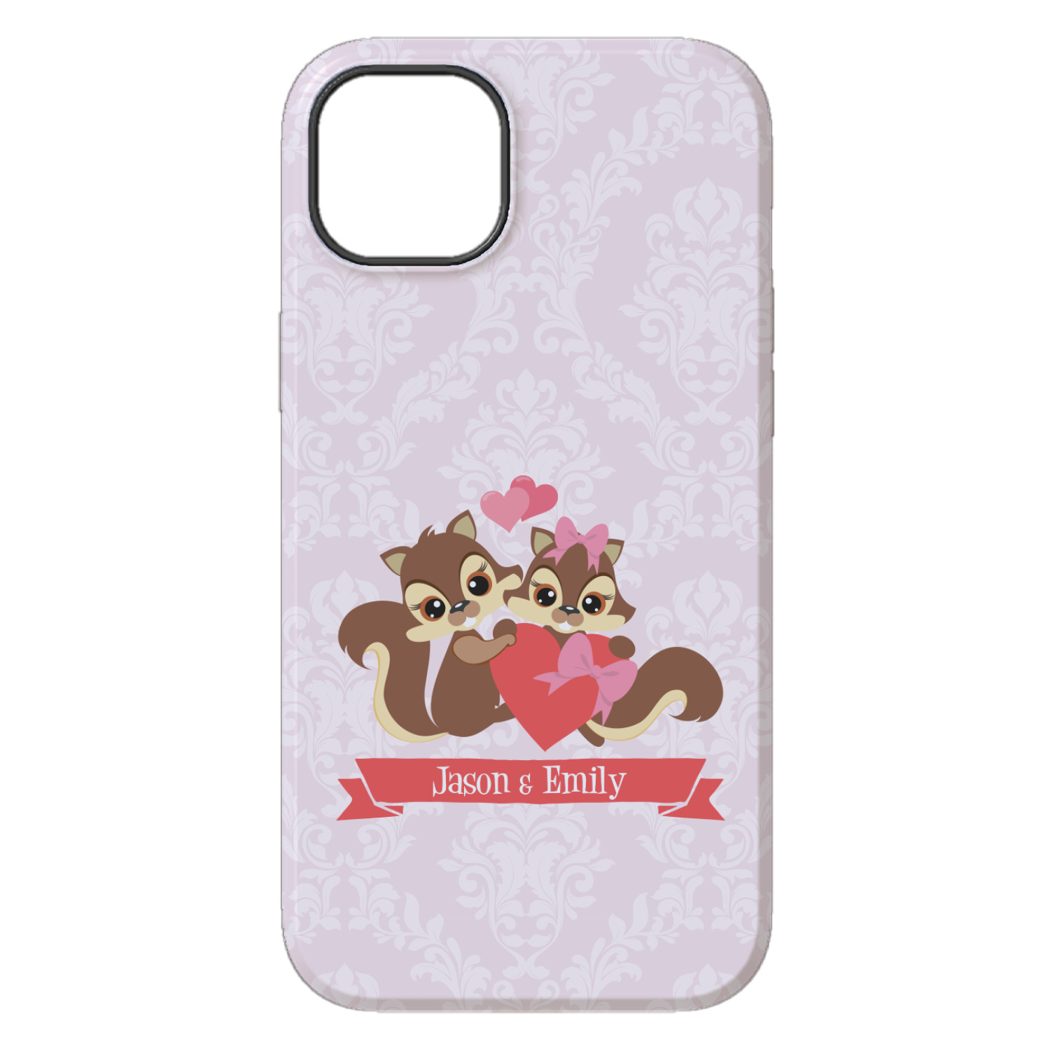 This Raccoon Couple Design is perfect for Valentine's Day or even for a newly engaged or married couple. It features a damask background in light pink with a raccoon couple in front holding hearts. The female has a bow on her head. There is a ribbon under the couple that can be customized with the couples names or even Mr. & Mrs. Your Text.