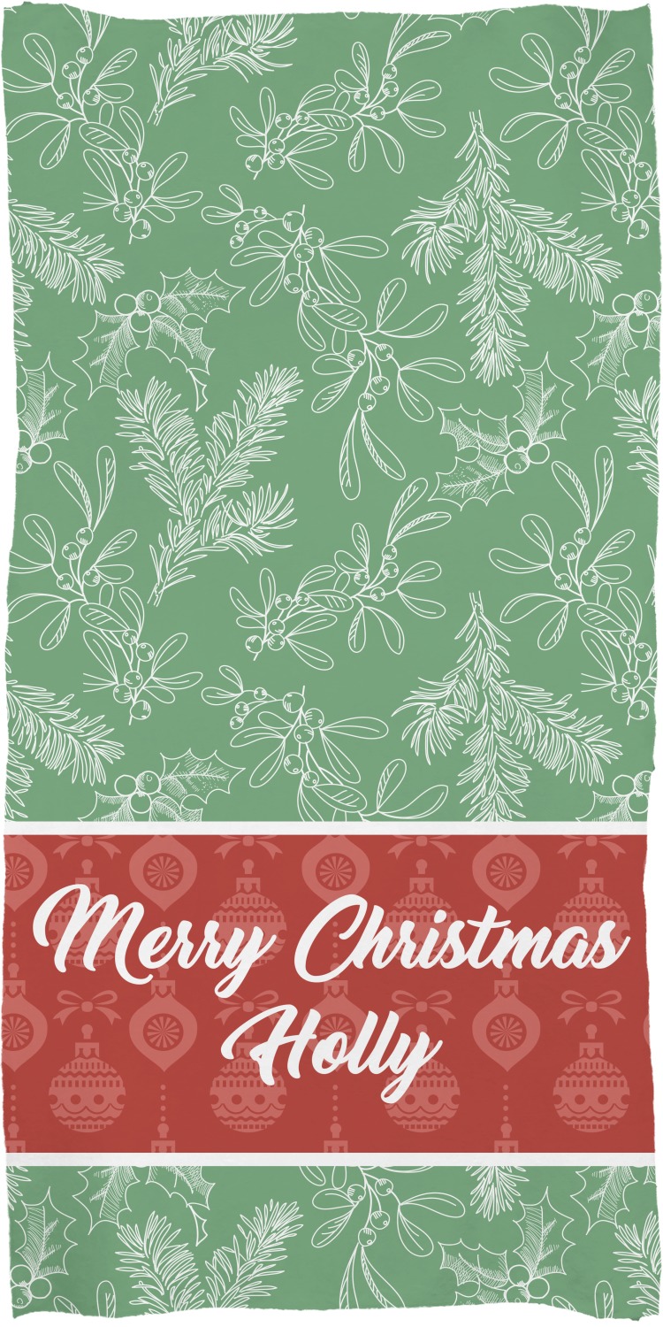 These customized bath towels are slightly larger than your standard towel and are the ideal size for wrapping around your body. They measure approximately 60" x 30". Your customization is displayed across the entire front face of the towel, while the back is white.