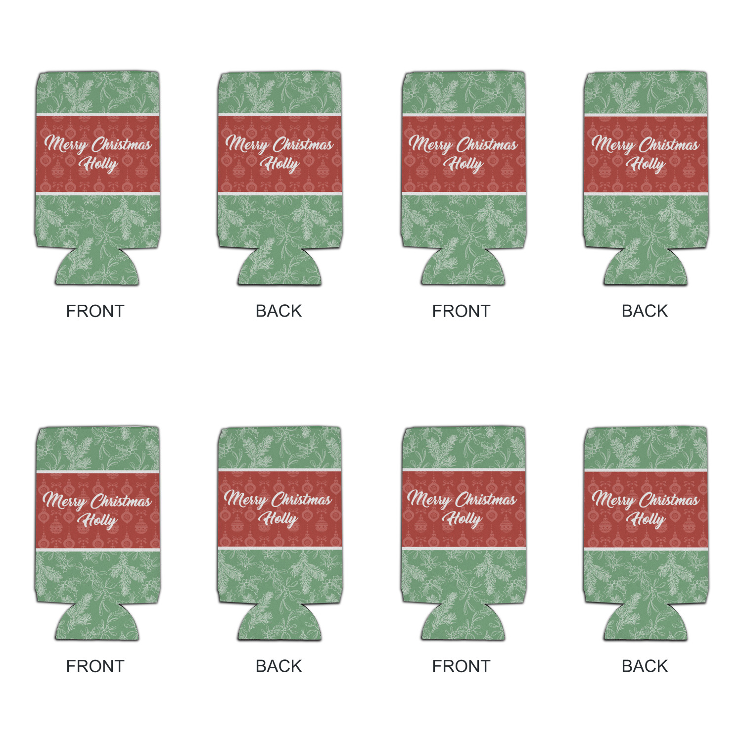 The design is divided into three horizontal parts. The top and bottom are a beautiful green holly background and the middle has a subtle red ornaments background. The middle section is where your personalization goes. This is a great design idea for Christmas decor or Christmas gifts.