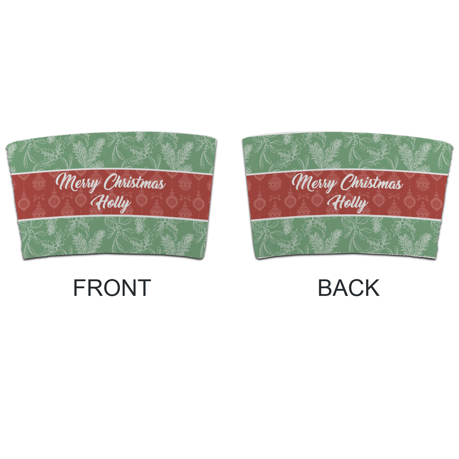 The design is divided into three horizontal parts. The top and bottom are a beautiful green holly background and the middle has a subtle red ornaments background. The middle section is where your personalization goes. This is a great design idea for Christmas decor or Christmas gifts.