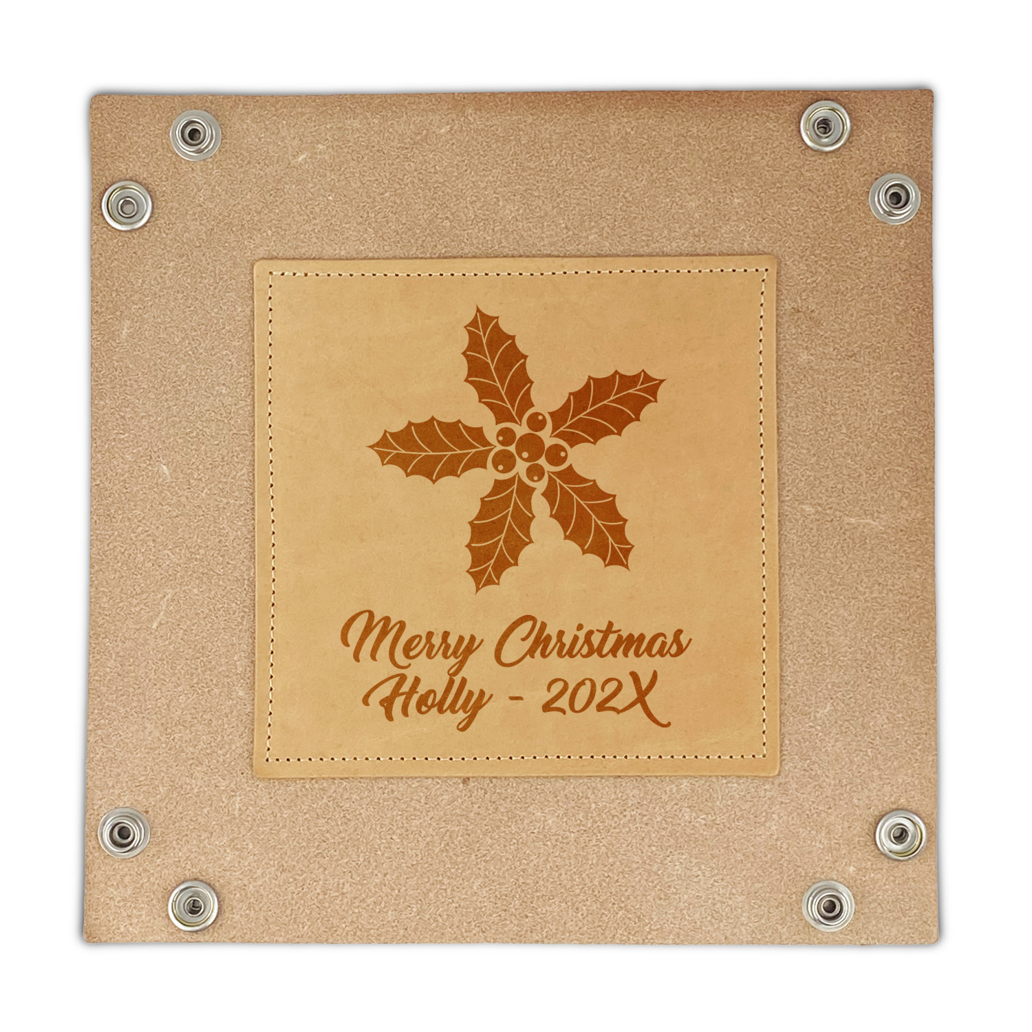 The design is divided into three horizontal parts. The top and bottom are a beautiful green holly background and the middle has a subtle red ornaments background. The middle section is where your personalization goes. This is a great design idea for Christmas decor or Christmas gifts.