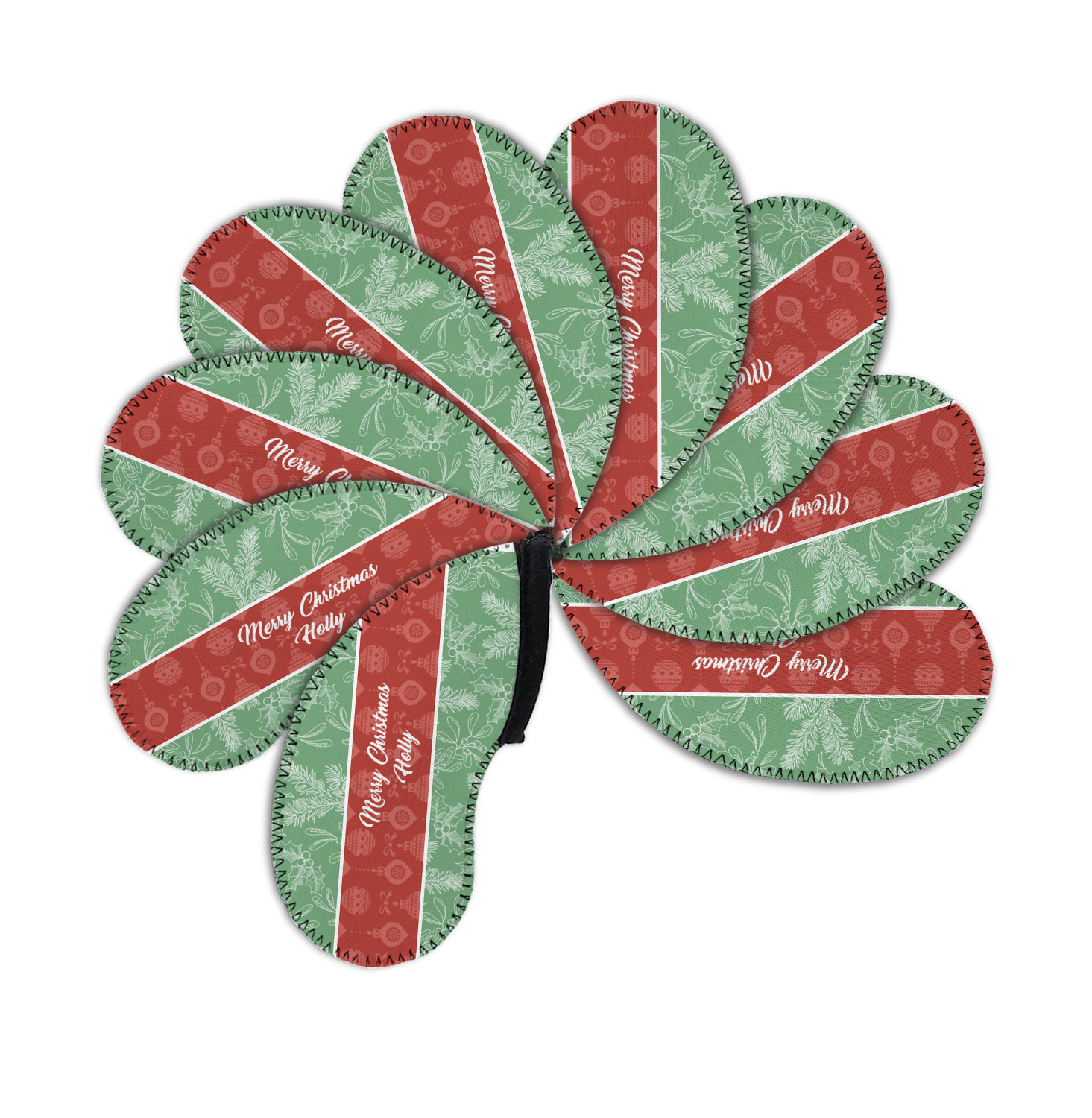 The design is divided into three horizontal parts. The top and bottom are a beautiful green holly background and the middle has a subtle red ornaments background. The middle section is where your personalization goes. This is a great design idea for Christmas decor or Christmas gifts.