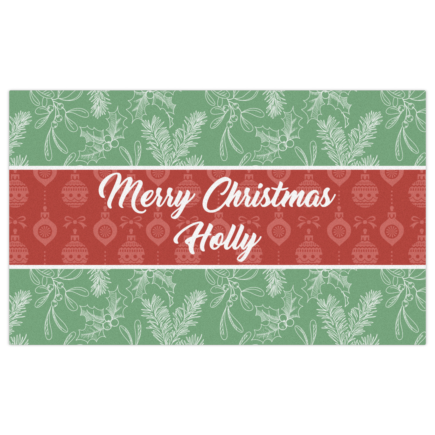 The design is divided into three horizontal parts. The top and bottom are a beautiful green holly background and the middle has a subtle red ornaments background. The middle section is where your personalization goes. This is a great design idea for Christmas decor or Christmas gifts.