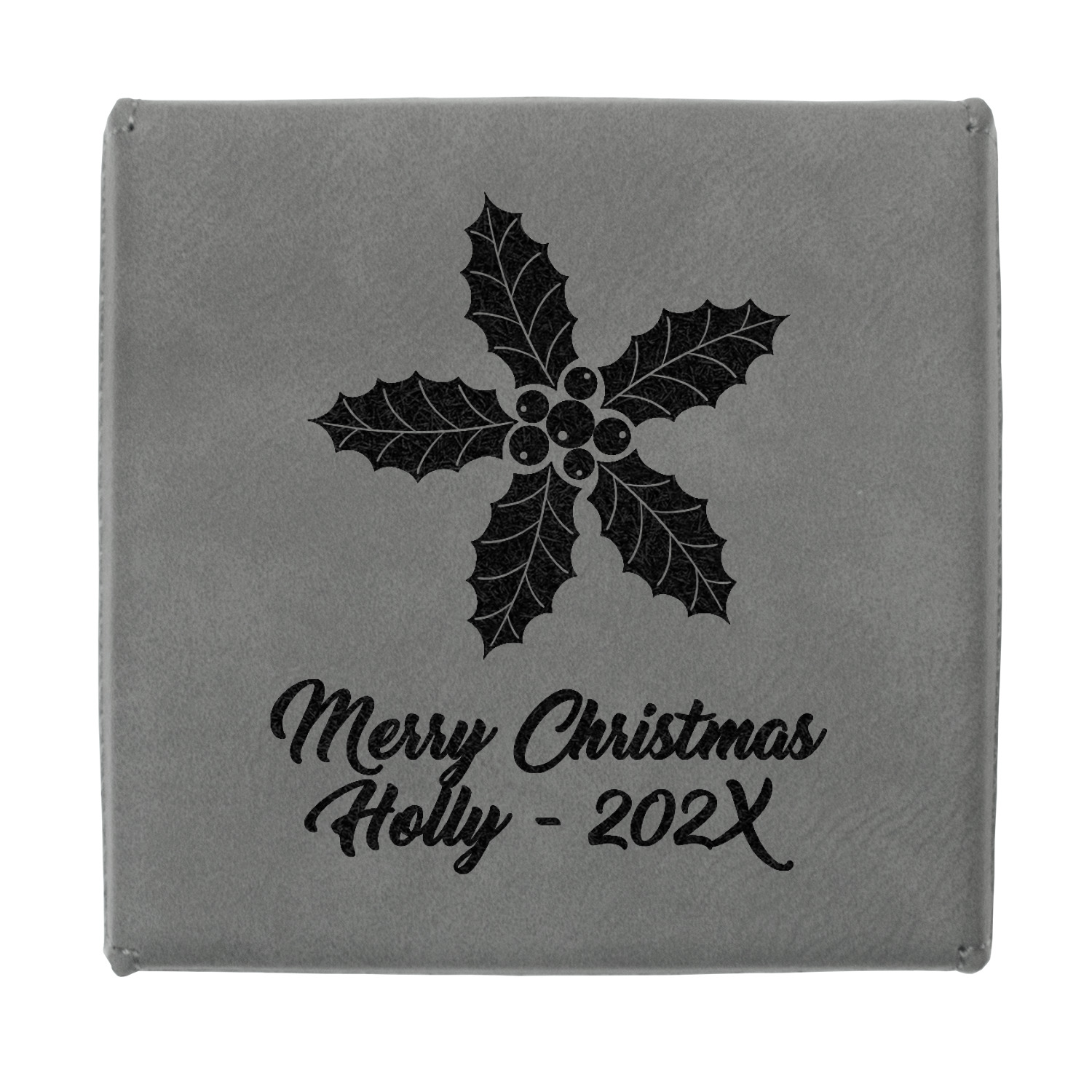 This jewelry gift box measures 3.5 inches long by 3.5 inches wide, and 1 inch deep. The box fits different sized jewelry items such as bracelets, necklaces, watches, earrings, rings and more. Engraved with a laser this high quality paper board and faux leather jewelry gift box is unique and makes any gift stand out.